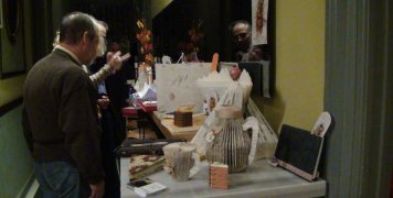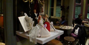 Εξαίσια δείγματα, Γαλλικής, Κόπτικης, Ιαπωνικής Βιβλιοδεσίας κ.α....καθώς επίσης και κούκλες με φορέματα εντυπωσιακά που μπορεί να τα ξεφυλλίσει κανείς με δέος και σεβασμό, κοσμούν τον επίσης καλλιτεχνικό και ευαίσθητο χώρο του Καφέ-Ρόδι, που αξίζει να επισκεφθείτε και για να απολαύσετε την έκθεση. Ίσως να βρείτε και μια καλή ιδέα για ένα υπέροχο δώρο, για τα πρόσωπα που αγαπάτε, εν όψει των εορτών...
