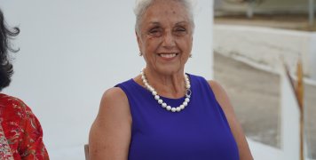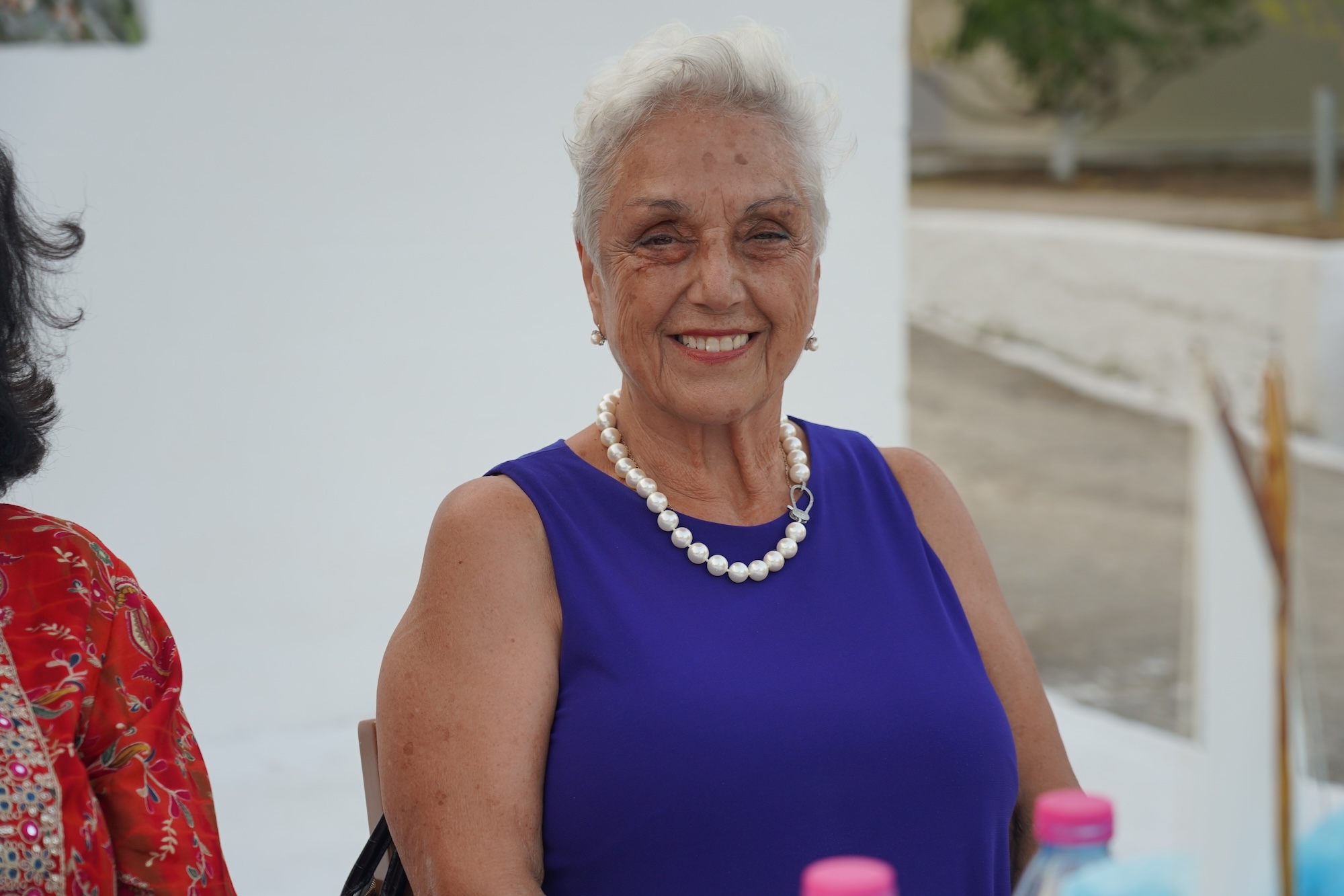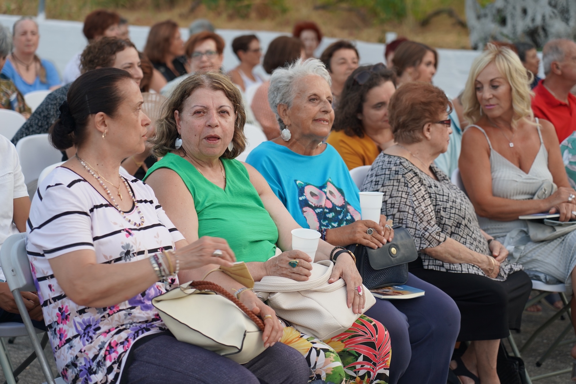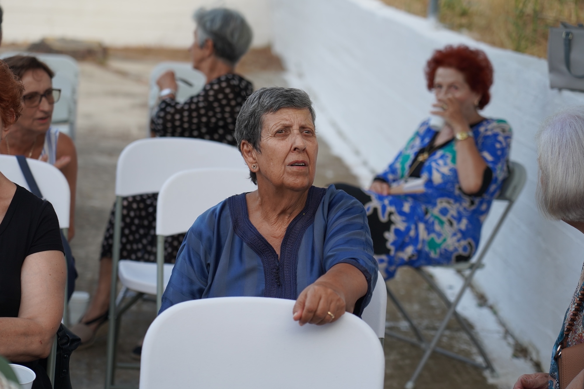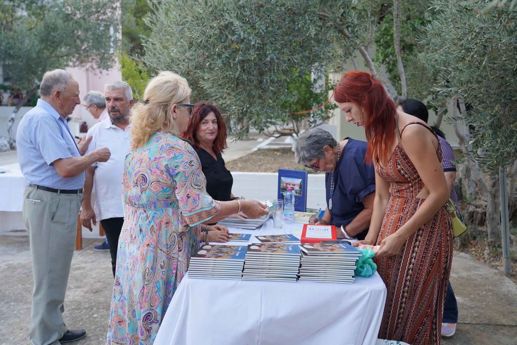 Η εκδήλωση άνοιξε με έναν σύντομο αλλά εγκάρδιο χαιρετισμό από τον καπετάν Νίκο Καραμούζο, παλιό συμμαθητή της συγγραφέα.