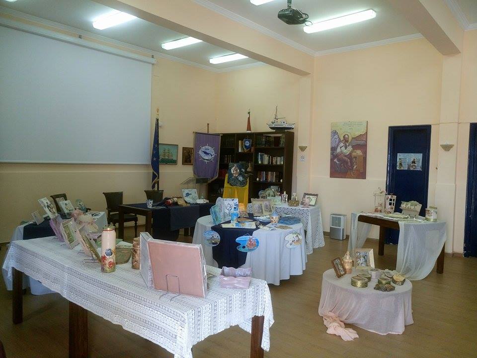 Η εκπαιδεύτρια παρουσίασε στους επισκέπτες τα έργα και την τέχνη του ντεκουπάζ, με την συνοδεία των μαθητριών της, Ελένης Τσιριά-Καλαμάρη και Ιουλίας Λιγνού.