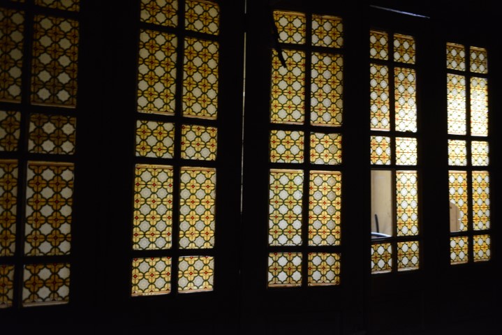 Η πρόσβαση στον όροφο γίνεται από χώρο υποδοχής στο ισόγειο όπου τοποθετήθηκε ξύλινη κλίμακα και το στόμιο υπόγειας δεξαμενής αποθήκευσης ομβρίων υδάτων. Τα πέντε δωμάτια στον όροφο του παλαιότερου λιθόκτιστου κτιρίου διαρθρώνονται γύρω από ένα εξάγωνης κάτοψης χωλ με ίχνη ζωγραφικής διακόσμησης στους τοίχους. Εξαιρετικό ενδιαφέρον παρουσιάζει η πεντάφυλλη θύρα του σαλονιού με τους ζωγραφιστούς πολύχρωμους υαλοπίνακες που μιμούνται vitreaux.