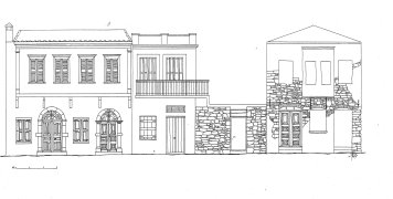 Η όψη της κατοικίας χρωματίστηκε, όσον αφορά το παλαιό κτίσμα, με κόκκινο της Πομπηίας κατά τη μόδα των αρχών του 20ού αιώνα. Ο κλειστός εξώστης που καταλάμβανε όλη την όψη της, κατεδαφίστηκε πριν από δεκαπέντε χρόνια περίπου. Η προσθήκη του Μεσοπολέμου χρωματίστηκε με Ινδικό γαλάζιο και την όψη της καταλάμβανε εξώστης που κατεδαφίστηκε επίσης.
