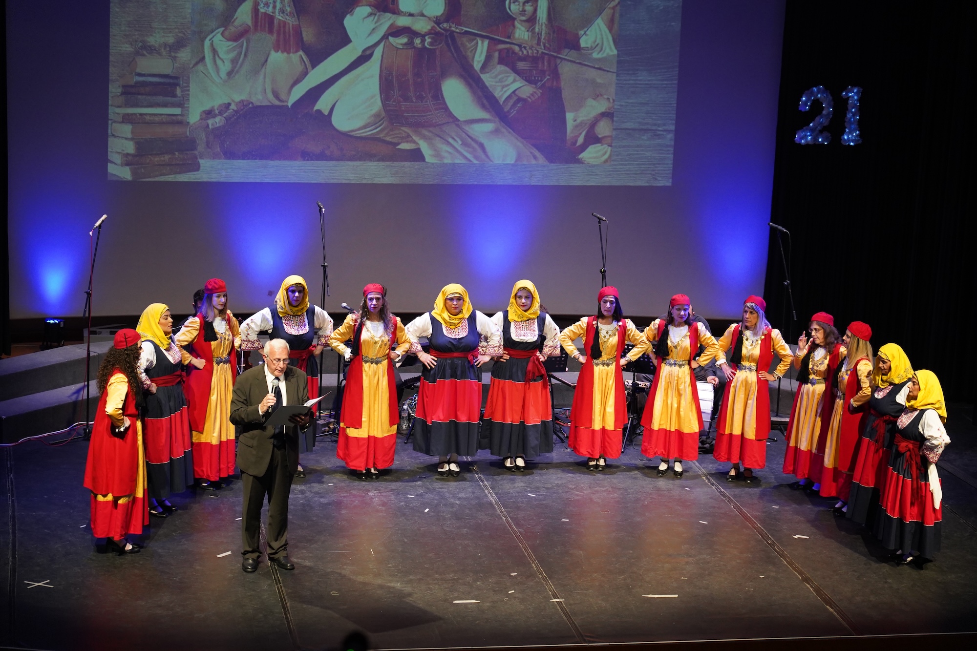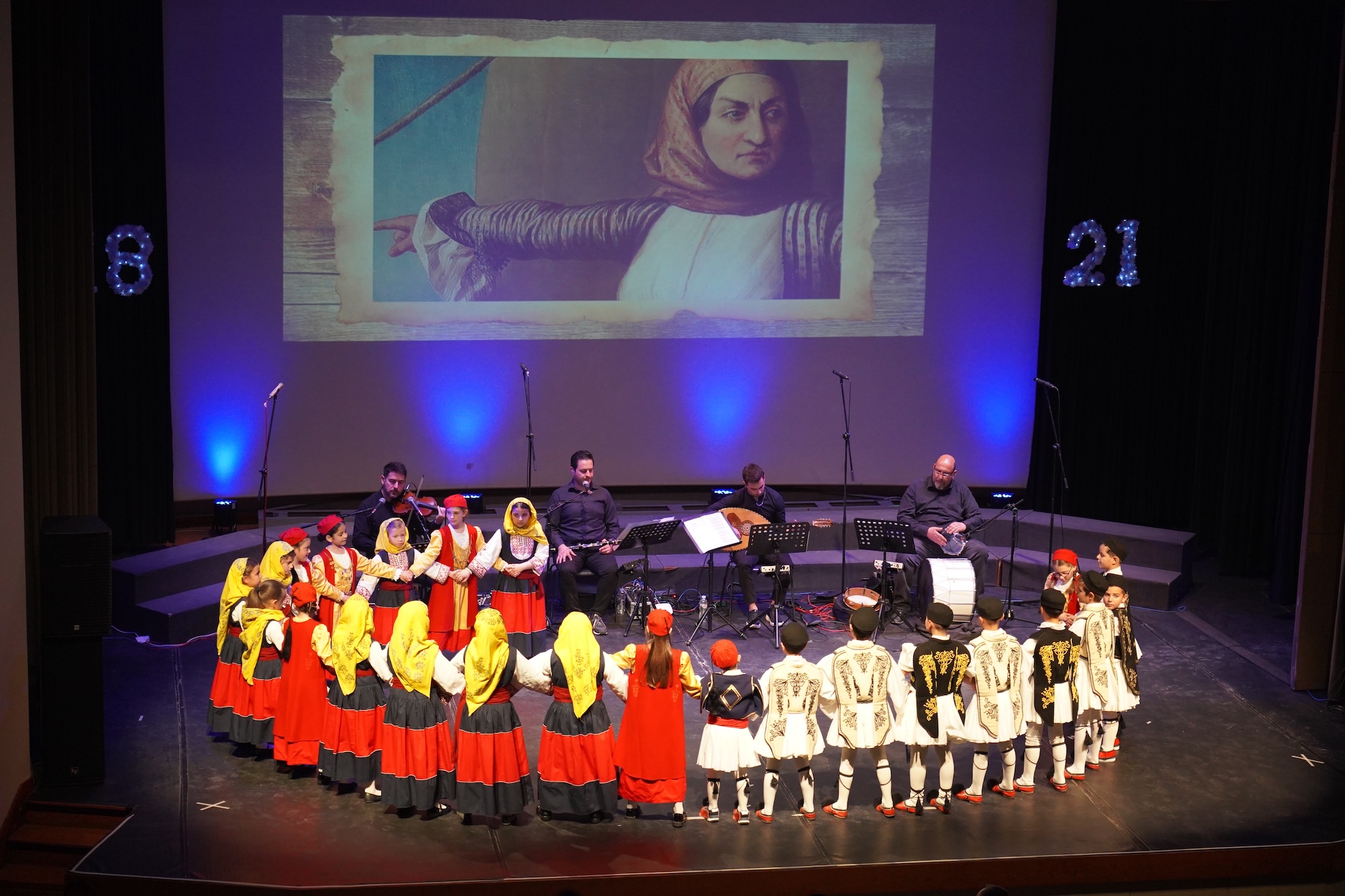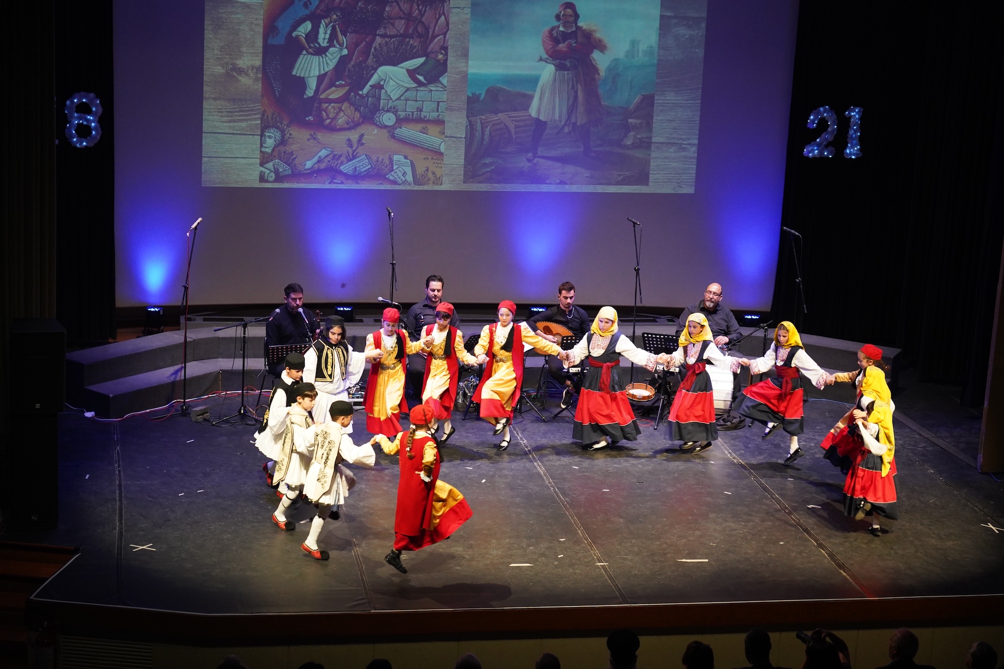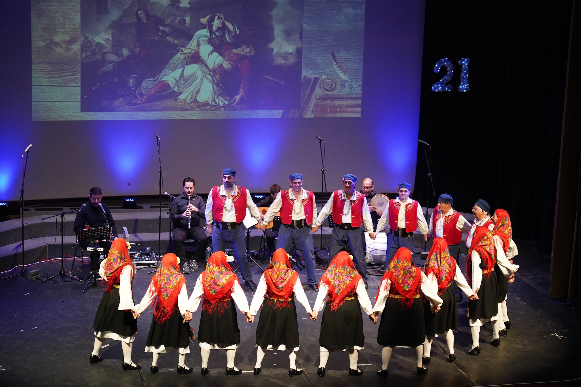 Η παράσταση με τίτλο: «Τραγουδώντας και χορεύοντας την Επανάσταση» ήταν ένα αφιέρωμα στον αγώνα των Ελλήνων προγόνων μας για την απελευθέρωση του έθνους μας το 1821 από τους Οθωμανούς κατακτητές.