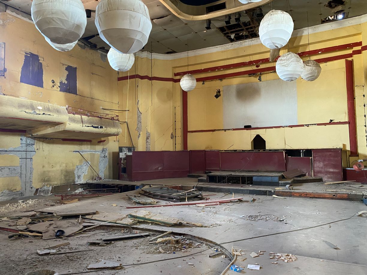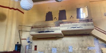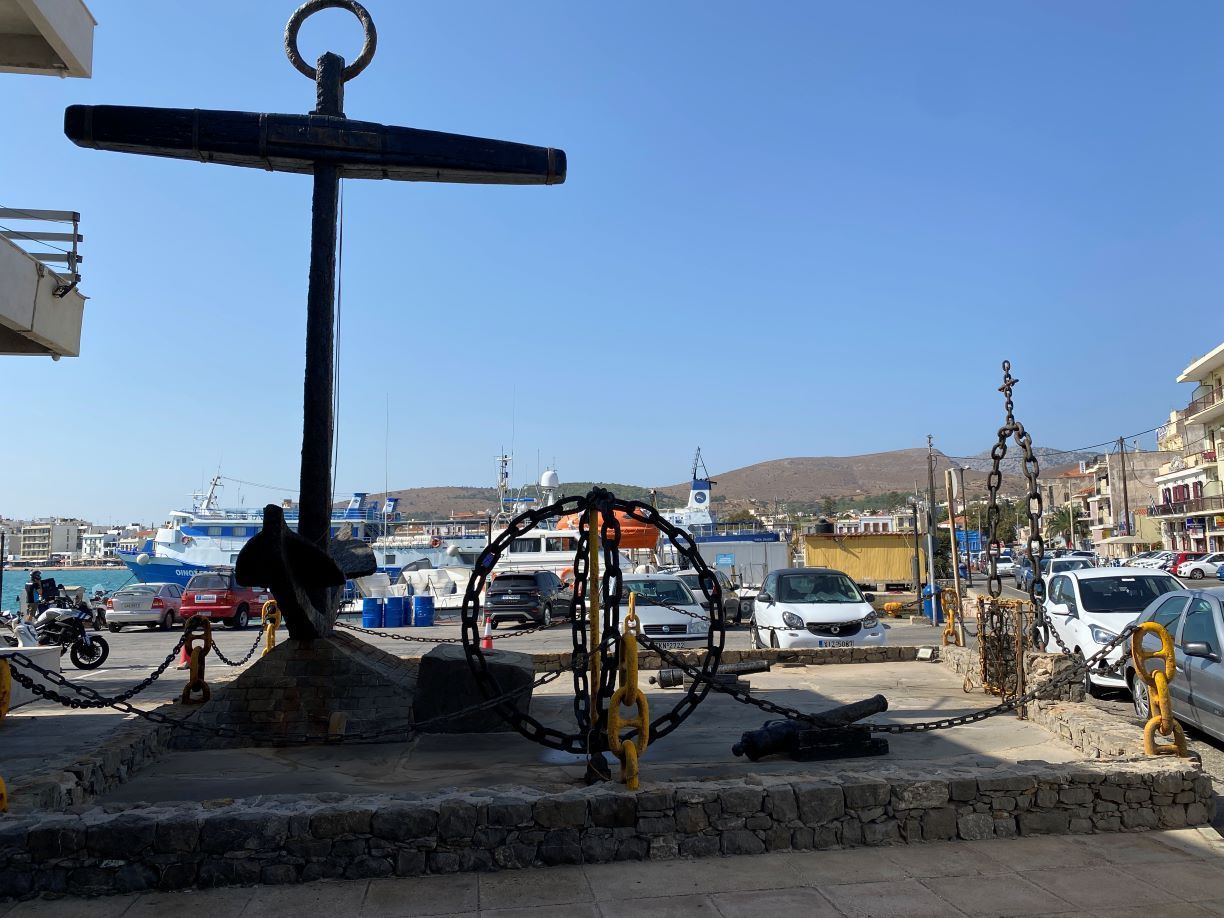 Ευτυχώς άφησαν ως ωραία καλλιτεχνική παρέμβαση μια παλιά άγκυρα, τουλάχιστον να μην φεύγει το κτίριο, αφού κάποτε θα πέσει από τις αλλεπάλληλες φθορές.