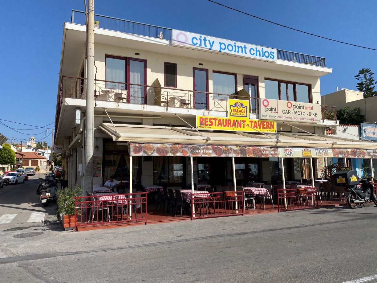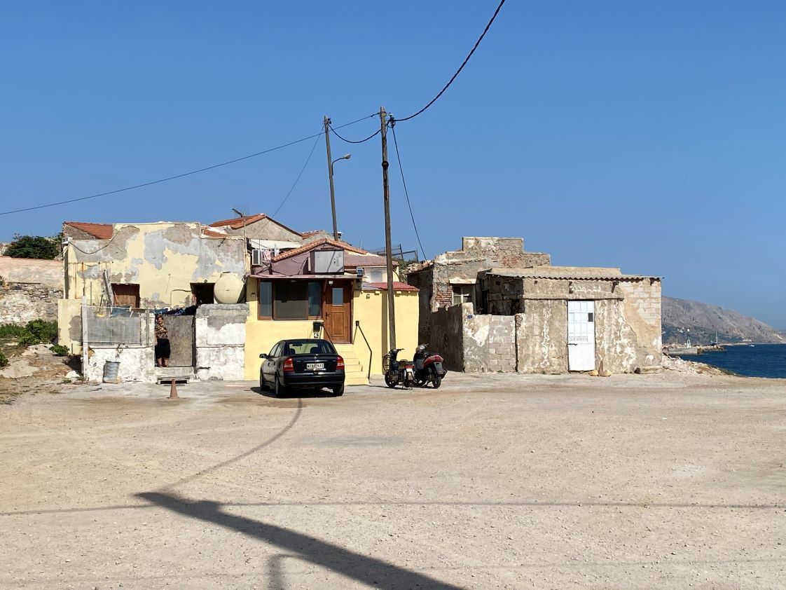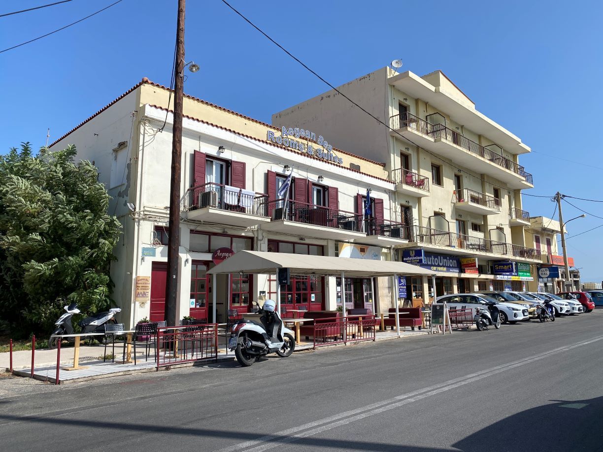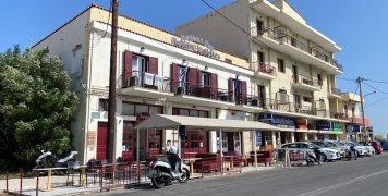 Η πλευρά των κτιρίων συνεχίζεται με ταβέρνες, καταστήματα ενοικίασης αυτοκινήτων και μικρά καταλύματα. Ο Θανάσης Μελέκος την βρίσκει ήσυχη αν και σηκώνει πάντα το βάρος του πλοίου, που συνεχίζει να δένει στο ίδιο σημείο.