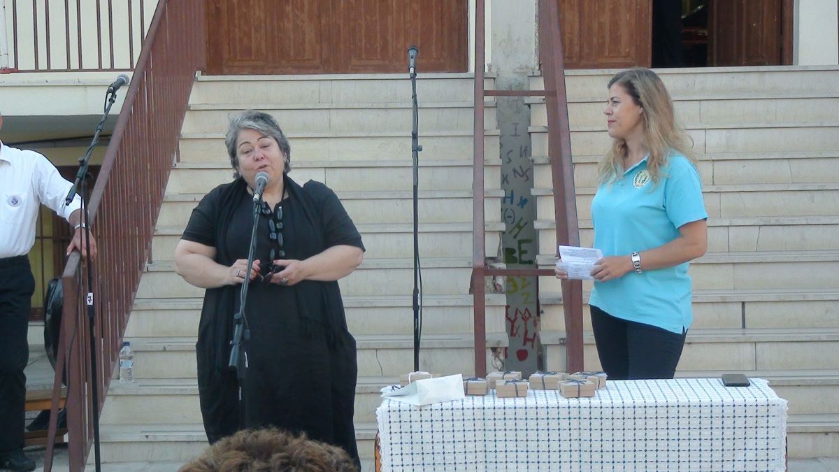 Η Πρόεδρος του ΜΕΟΘ Ερμίνα Τάμαρη, αφού καλοσώρισε το κοινό και προλόγισε τη βραδιά, απένειμε Τιμητική Πλακέτα στον Σύλλογο Θυμιανουσίων Αμερικής ''Αγία Ερμιόνη'' για την πολυετή και ουσιαστική προσφορά τους στον ΜΕΟΘ. Ο Πρόεδρος του Συλλόγου Θυμιανουσίων Αμερικής ''Αγία Ερμιόνη'' Μικές Φρεζούλης παρέλαβε με χαρά την πλακέτα και τόνισε ότι οι Θυμιανούσοι της Αμερικής θα είναι πάντα συμπαραστάτες στο έργο του ΜΕΟΘ και πάντα στο ''πλευρό του χωριού''. Στην καθιερωμένη αυτή Εορταστική Εκδήλωση της λήξης των Εργαστηρίων του ΜΕΟΘ (για το Καλοκαίρι), χαιρετισμό απηύθυναν επίσης, τα ιδρυτικά μέλη του ΜΕΟΘ Σταύρος Μιχαηλίδης και ο Δάσκαλος Κυριάκος Πρωάκης. Μαζί με την Πρόεδρο του ΜΕΟΘ Ερμίνα Τάμαρη παραβρέθηκαν χαιρετίζοντας την Εκδήλωση και τη σύμπραξη των Χορωδιών τους, ο Πρόεδρος του ΦΟΒ Πολύδωρος Στείρος και ο Πρόεδρος του Μ.Σ. Πυργίου ''Γεώργιος Θεοτοκάς'' Κώστας Παπαδόπουλος.