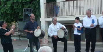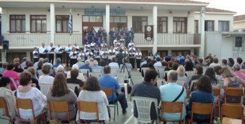 Η Χορωδία Βυζαντινής Μουσικής (που είναι νεοσύστατο φετινό Εργαστήριο του ΜΕΟΘ) ξεκίνησε τη βραδιά με ύμνους και προσευχή υπό τη διεύθυνση και τη διδασκαλία του Παντελή Κωνσταντά και στη συνέχεια η Χορωδία Ενηλίκων του ΜΕΟΘ σε σύμπραξη με τις Χορωδίες του ΦΟΒ και του Μ.Σ. Πυργίου, υπό τη διδασκαλία και τη διεύθυνση της Μαέστρου Σόφης Κώττη τραγούδησε...και όλοι μαζί κράτησαν συντροφιά στο κοινό που γέμισε την αυλή του Σχολείου, με μια κοινή συναυλία με τίτλο ''Οι δικοί μας ήχοι'', που το πρόγραμμά της με τα τραγούδια του... ''Τζαμάϊκα'', ''Δελφίνι, δελφινάκι'' και άλλα, μαζί με το νέο τραγούδι για τη μαστίχα και τους ανθρώπους που την παράγουν και τη ζουν (σε στίχους Ευγενίας Ασλανίδου και μουσική Σόφης Κώττη) σαν ένα ευχάριστο μελτεμάκι δρόσισε τη γιορτή. Παράλληλα στο χώρο της εκδήλωσης λειτούργησε Έκθεση με πλεκτές δημιουργίες από το Εργαστήριο ''Πλέξιμο με βελόνες'' του ΜΕΟΘ όπου διδάσκει και επιμελείται η Κυριακή Χατζαντωνάκη.