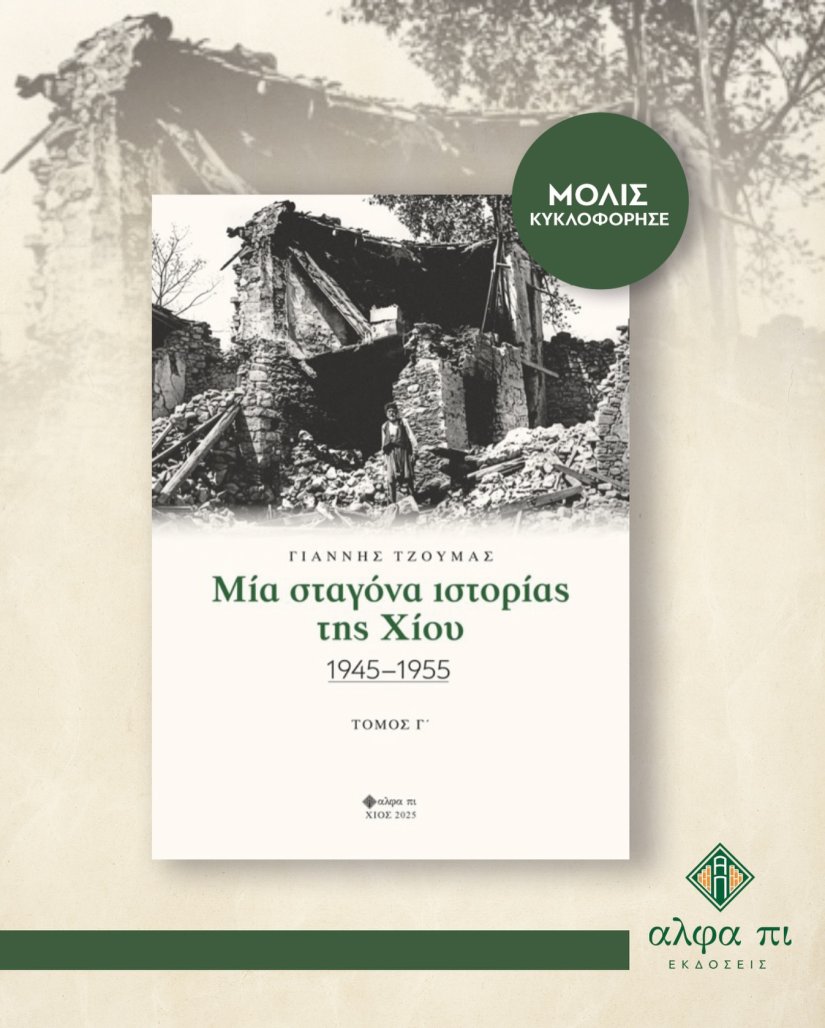 Κυκλοφόρησε λοιπόν ο Γ! τόμος των ιστορικών σταγόνων που καλύπτουν τη δεκαετία 1945-55. Εκ των οποίων η πενταετία 1945-50 έχει ιδιαίτερο ενδιαφέρον λόγω των μεταπολεμικών εξελίξεων. Ξεκινώντας από την απελευθέρωση της Χίου από τον οθωμανικό ζυγό ο Γιάννης Τζούμας καταγράφει ανά δεκαετία όλα όσα μεσολάβησαν.