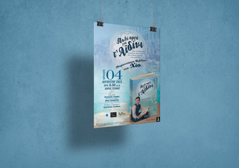 Η Art Gallery Δές -Δέσποινα Σταθάκη οι εκδόσεις Αρτέον και το Βιβλιοπωλείο Πυξίδα προσκαλούν στην παρουσίαση του βιβλίου του Κώστα Στοφόρου «Πολύ αργά για τ’ Αϊδίνι», την Παρασκευή 4 Αυγούστου στις 8 .00 μ.μ. στον χώρο της Gallery