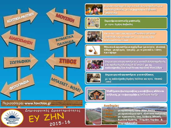 Ο Φ.Ο.Β. παρουσιάζει για τέταρτη συνεχή χρονιά εναλλακτικές επιλογές δημιουργικής απασχόλησης για παιδιά και ενήλικες με το μικρότερο δυνατό κόστος.