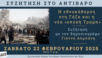 Μετά τις εργασίες ανακαίνισης, το Αντίβαρο ξεκινά και πάλι τη λειτουργία του. Και δεν θα μπορούσαμε παρά να κάνουμε έναρξη με πρώτη εκδήλωση για την Παλαιστίνη, με αφορμή και όσα θλιβερά συμβαίνουν τώρα στην πολύπαθη Γάζα.