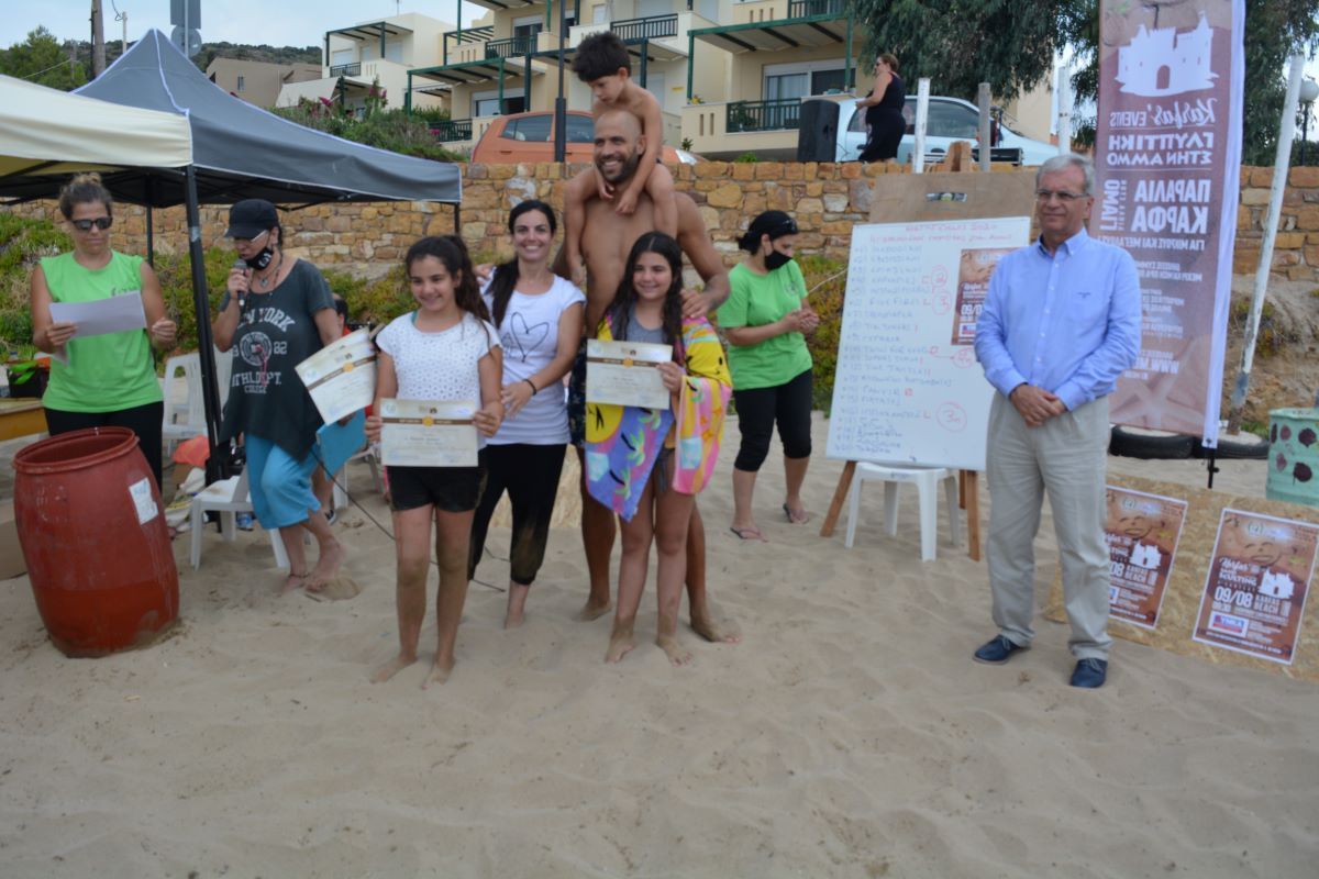 Πάνω από 100 παιδιά χωρισμένα σε 20 ομάδες, από τις οποίες τρείς της Κιβωτού, έδωσαν όλο το μεράκι τους αποτυπώνοντας από κροκόδειλους μέχρι αντιρατσιστικά σύμβολα, στην πανέμορφη άμμο του Καρφά.