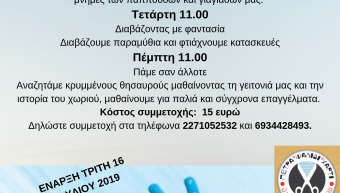 Στους φιλόξενους χώρους του μικρού βιβλιοπωλείου πραγματοποιούνται ποικίλες εκδηλώσεις, παρουσιάσεις βιβλίων, εργαστήρια για παιδιά, παραμυθοπεριπέτειες και ιστορίες στις οποίες πρωταγωνιστές είναι κυρίως οι μικροί φίλοι του βιβλιοπωλείου.