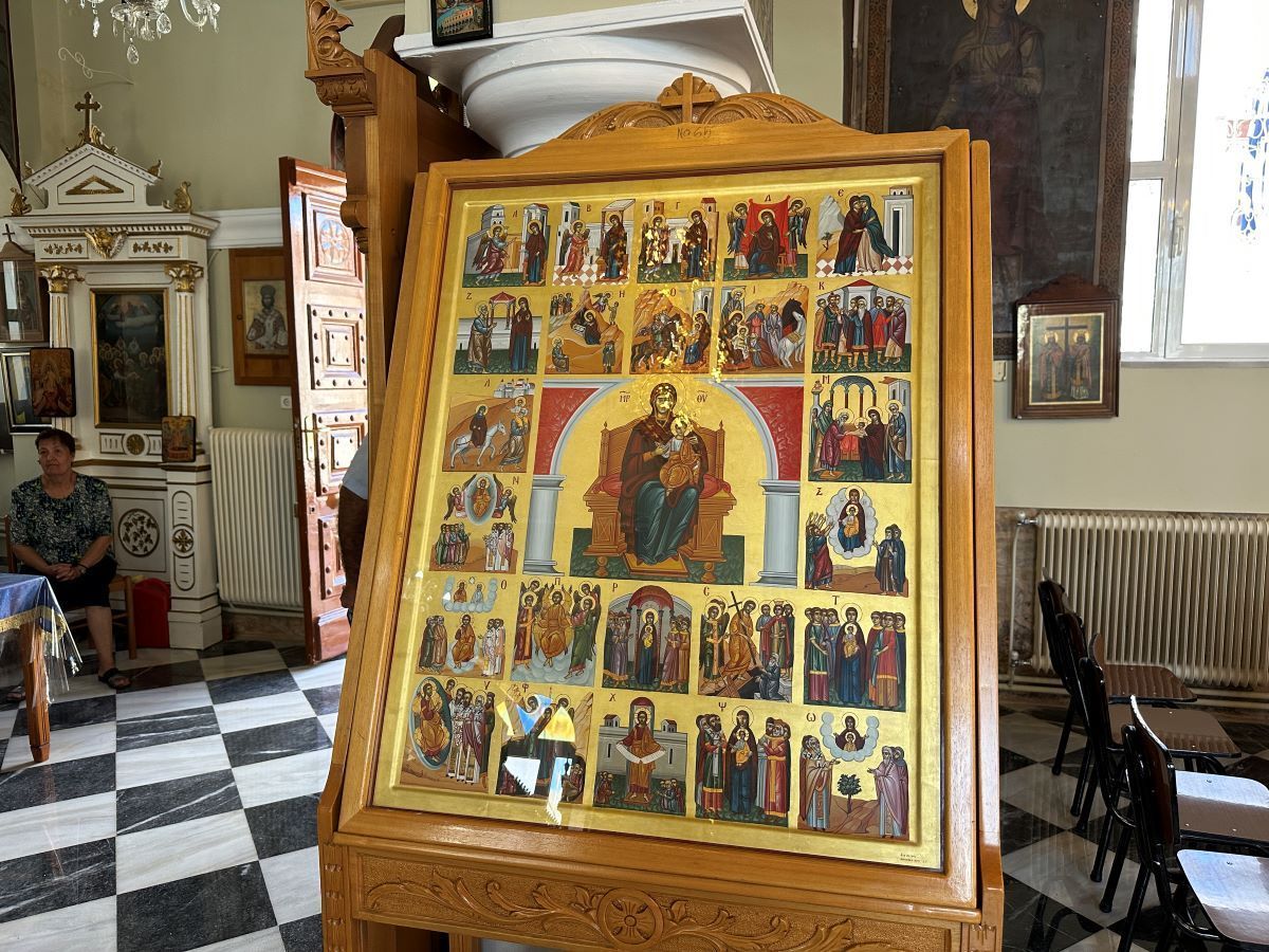 Στην είσοδο μαζί με την Ενοριακή Επιτροπή μας υποδέχεται ο πατέρας Μακάριος Στρουμπάκης, όχι μόνο υποδειγματικός Ιερέας, αλλά και ένας πολύ οργανωτικός άνθρωπος, γνώστης της ιστορίας του Ναού που υπηρετεί αλλά και οργανωτής με κάθε λεπτομέρεια της λειτουργίας του.