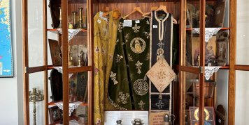 Εκεί ο πατ. Μακάριος Στρουμπάκης φυλάσσει παλιά Άμφια Ιερέων ενώ η Ενοριακή Επιτροπή μας φιλεύει ένα κέρασμα.