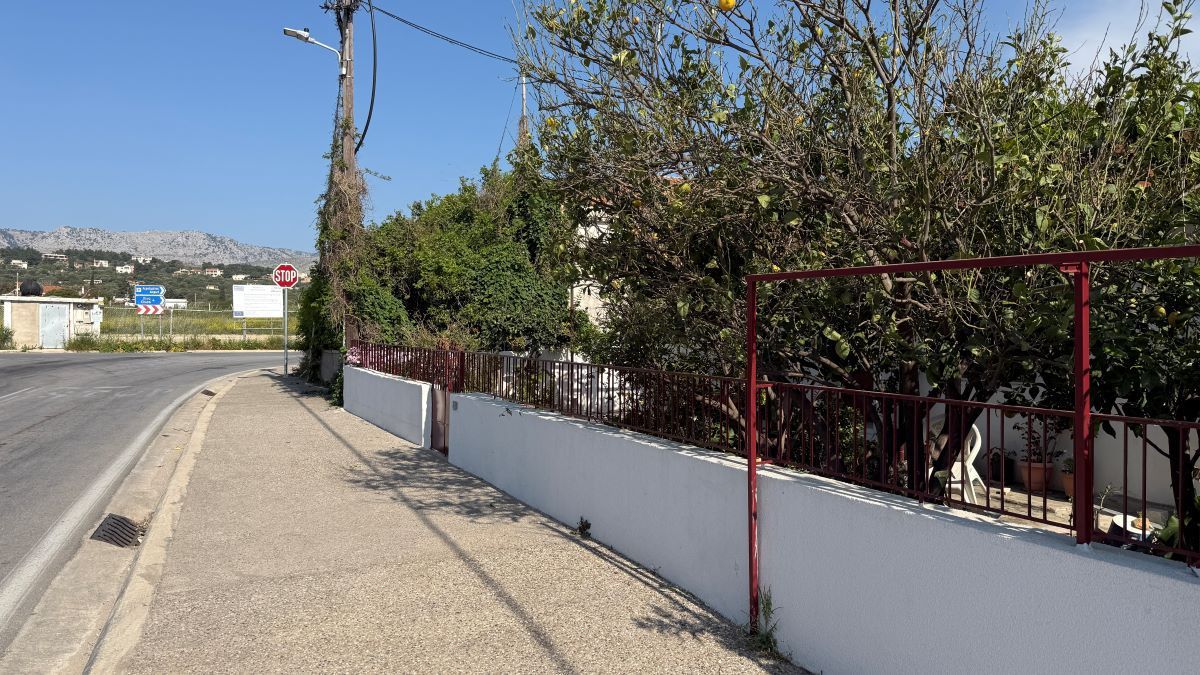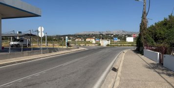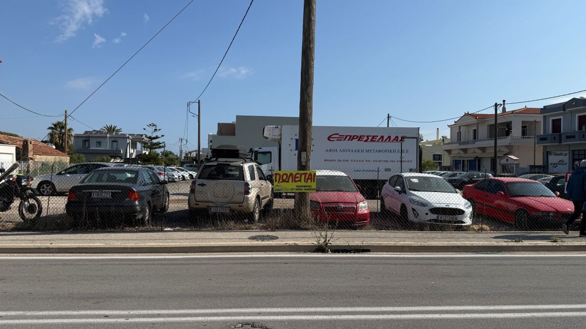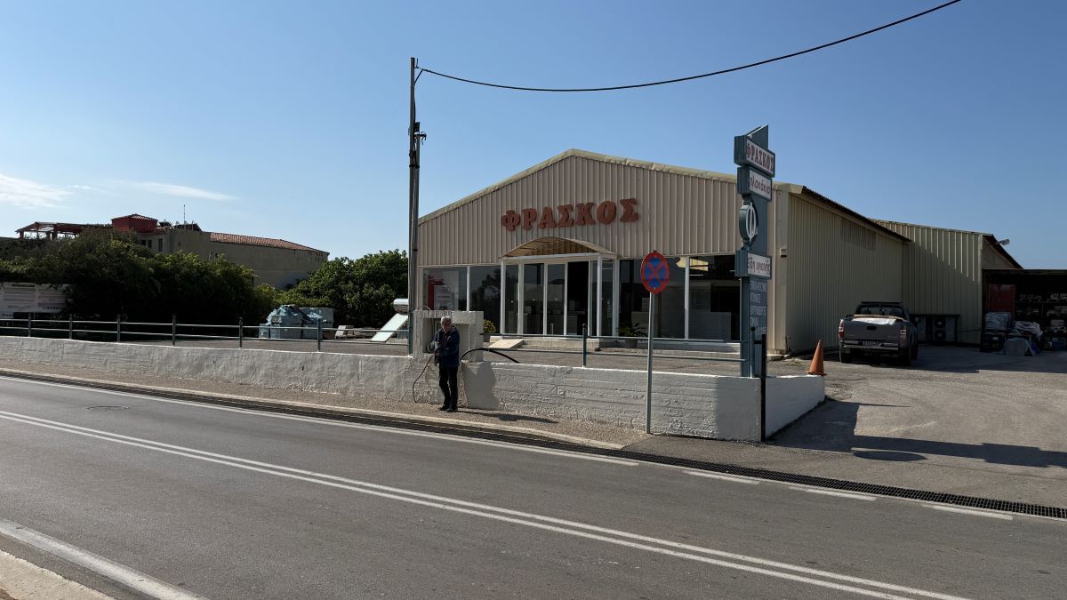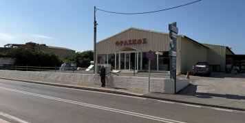 Αριστερά μας ένας μεγάλος χώρος στάθμευσης ενός χώρου, που πάντως πωλείται, απέναντι από το κατάστημα ειδών Υγιεινής Φράσκου.
