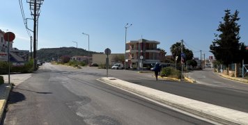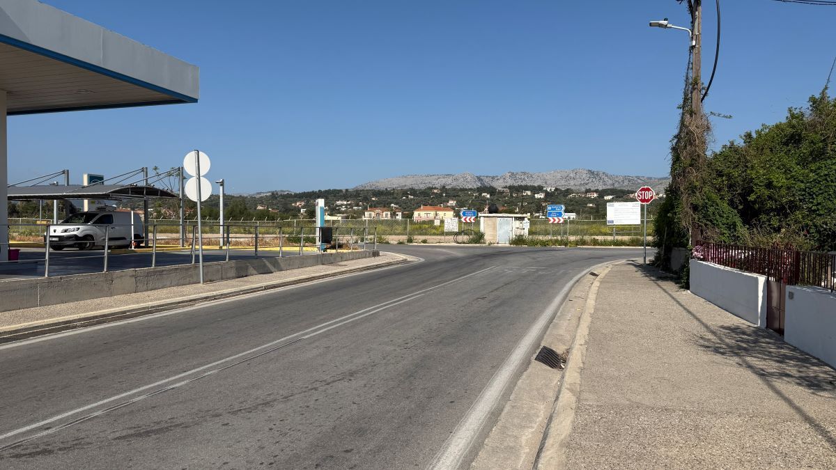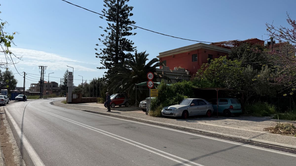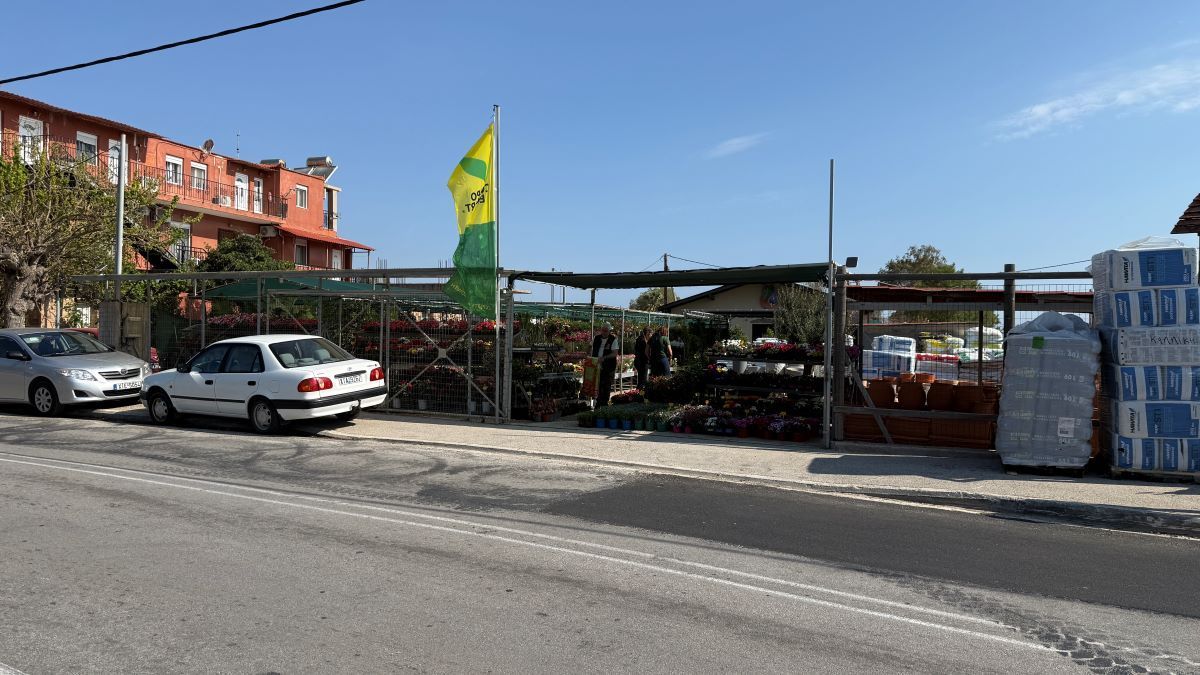 Αριστερά μας ένα συγκρότημα ενοικιαζομένων και το Φυτώριο «Γη και κήπος» του Θοδωρή Καλλίκη, δίπλα σε μεταλλικές θυρίδες των ΕΛΤΑ. Απέναντι ένα χωράφι με ελιές, απέναντι από μια πάροδο, που οδηγεί στη θάλασσα, δίπλα ένα χωράφι με δυό ακούραστα… χορτοκοπτικά μέσα, που δεν είναι παρά δύο άλογα, που δεν αφήνουν ούτε εκατοστό χόρτου να πάει χαμένο.