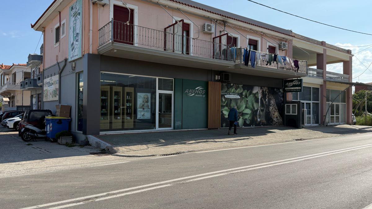 Η γνωστή μας ανώνυμη οδός αριστερά και για την συνέχεια το κεντρικό κατάστημα του Άνεμου, με τα προϊόντα μαστίχας, μια σταγόνα της οποίας είναι τόσο πειστική, που μπορείς και να… κολλήσεις πάνω της.