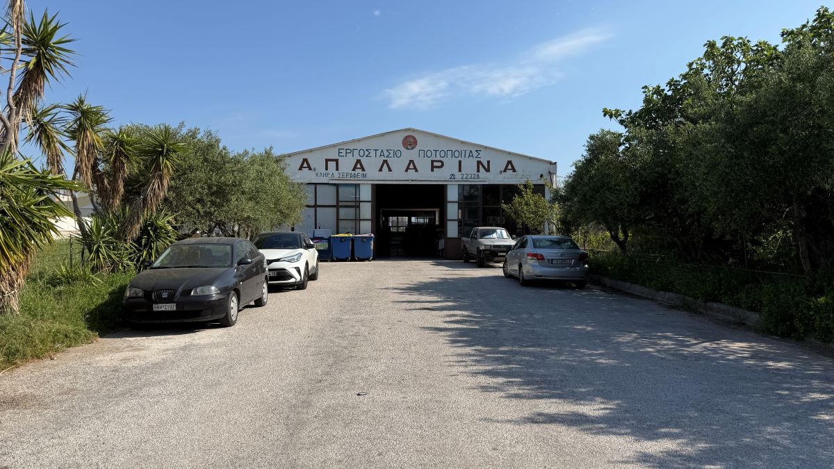 Αριστερά μας άδεια καταστήματα και μια αδιέξοδη πάροδος, που οδηγεί σε συνεργείο Ι.Χ. ένα χωράφι για την συνέχεια και οι εγκαταστάσεις της Ποτοποιϊας Απάλαρου.