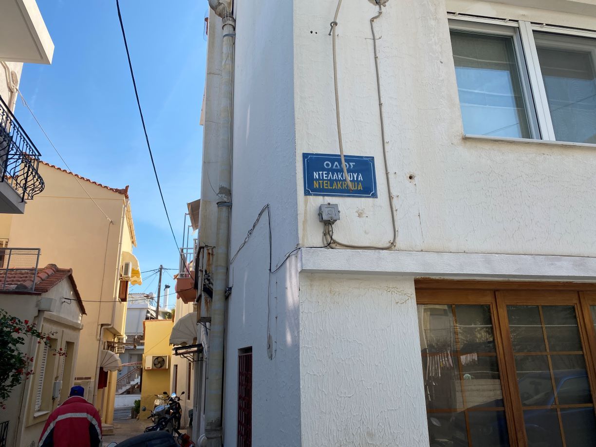 Το νησί μας είναι λογικό να τον τιμήσει με μια οδό, που μπορεί να μην είναι κεντρική και ανάλογη του βάρους του ονόματος του ζωγράφου, είναι όμως… δαιδαλώδης και ας πούμε ως τέτοια ομοιάζει με… πινελιά, καθ’ ότι ο οδός Ντελακρουά είναι όχι μία, αλλά έξι στην ουσία στενά, με το ίδιο όνομα στην περιοχή Αγίου Ιωάννη Θεολόγου.