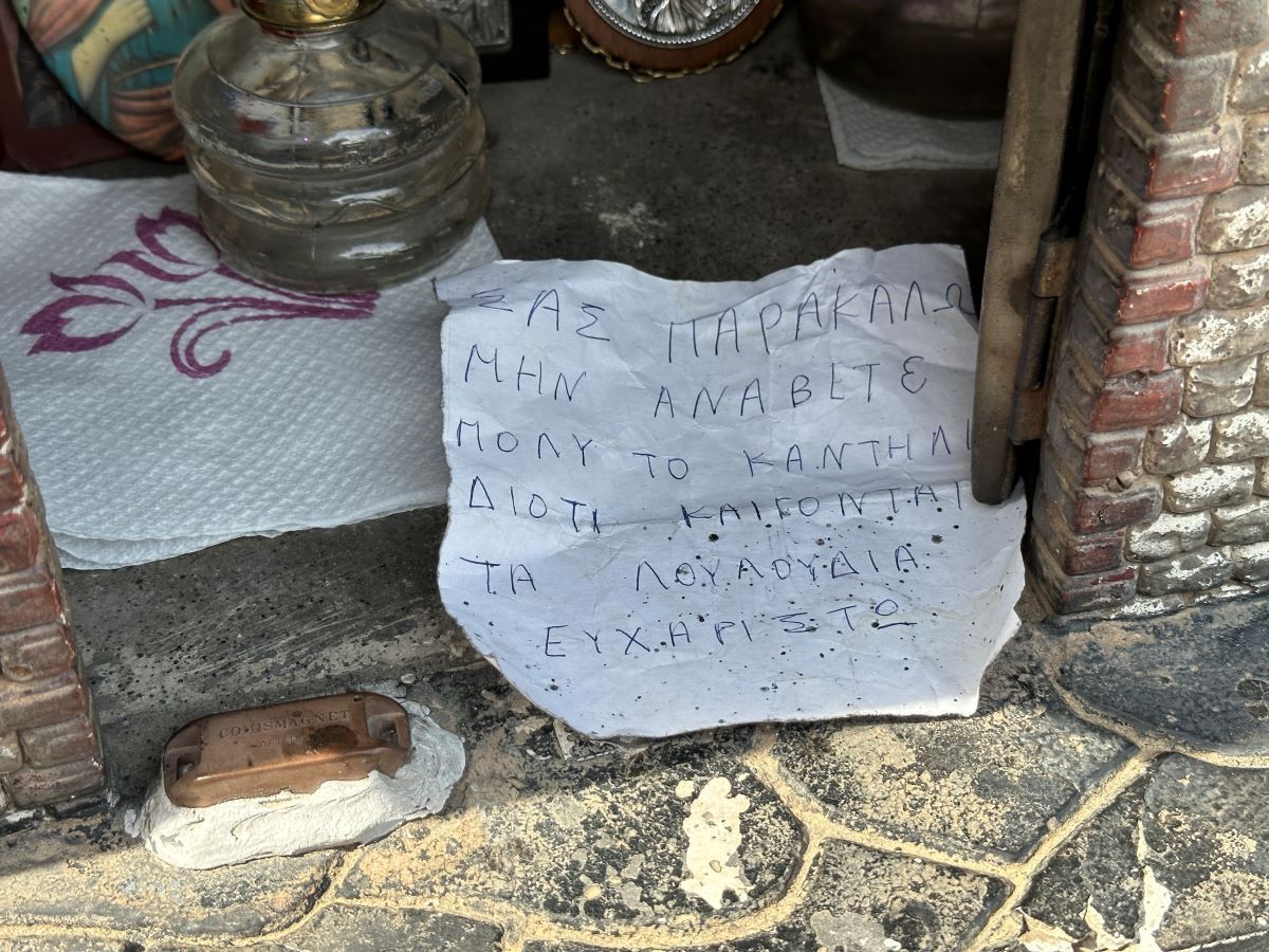 Φεύγοντας μας δίνει διακοσμητικά μπουκάλια ζαρντινιέρες και συνεχίζουμε ανηφορίζοντας πάλι την οδό, που από εδώ και πέρα γίνεται Χαλκιά… Αεροπόρου.
