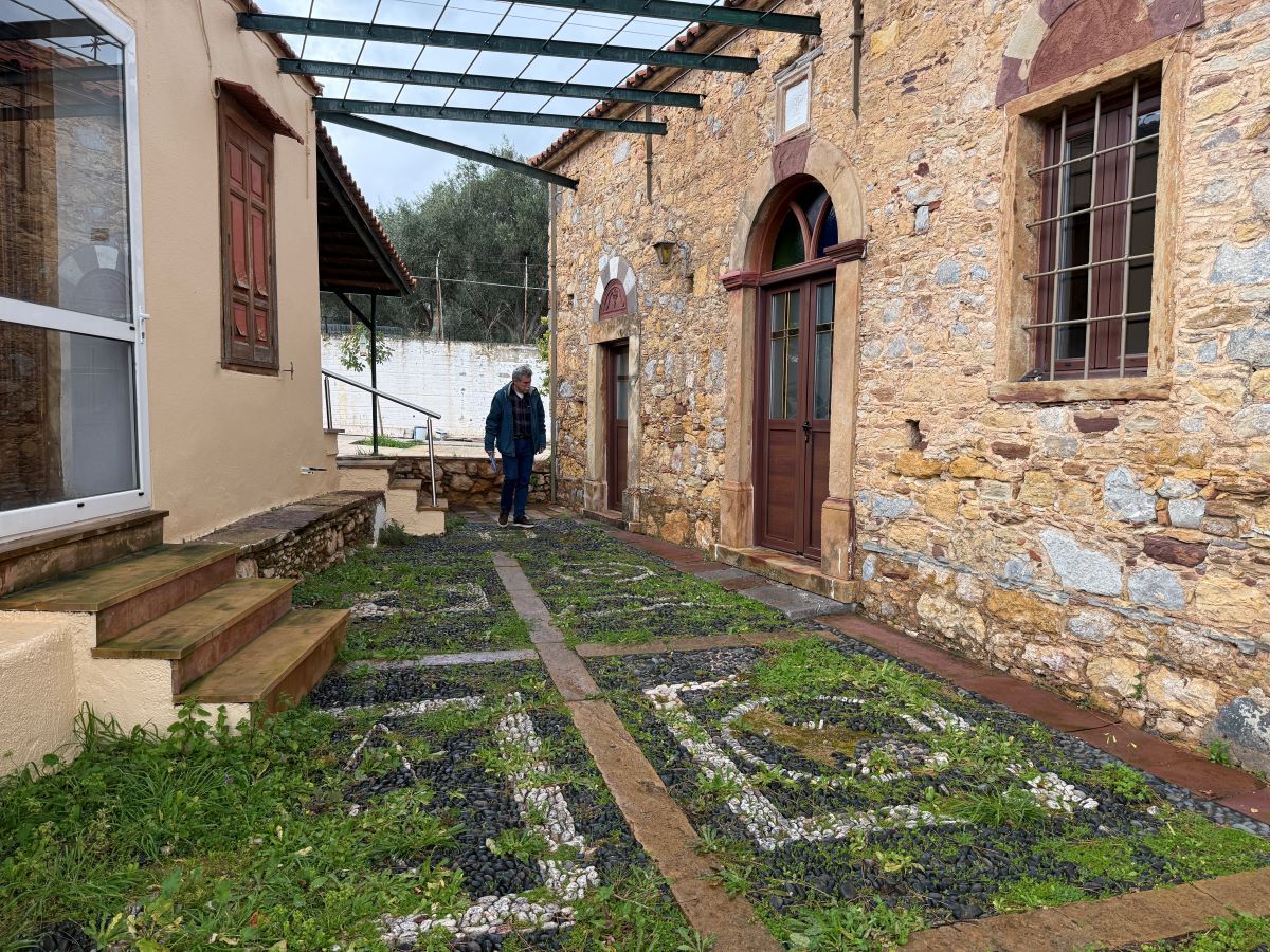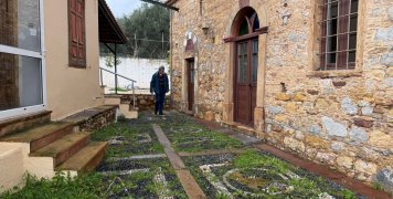 Ένα σπίτι αριστερά μας και χωράφια δεξιά, άλλη μια οικία στο πράσινο χρώμα και κοτέτσια σχεδόν σε κάθε αυλή, μια εξωτερική μεταλλική πόρτα σε σχήματα μαιάνδρων και κύκλων, ένας μάγγανος «κρυμμένος» αριστερά μας και μια πράσινη πόρτα με την τεχνοτροπία εκείνων του Κάμπου.