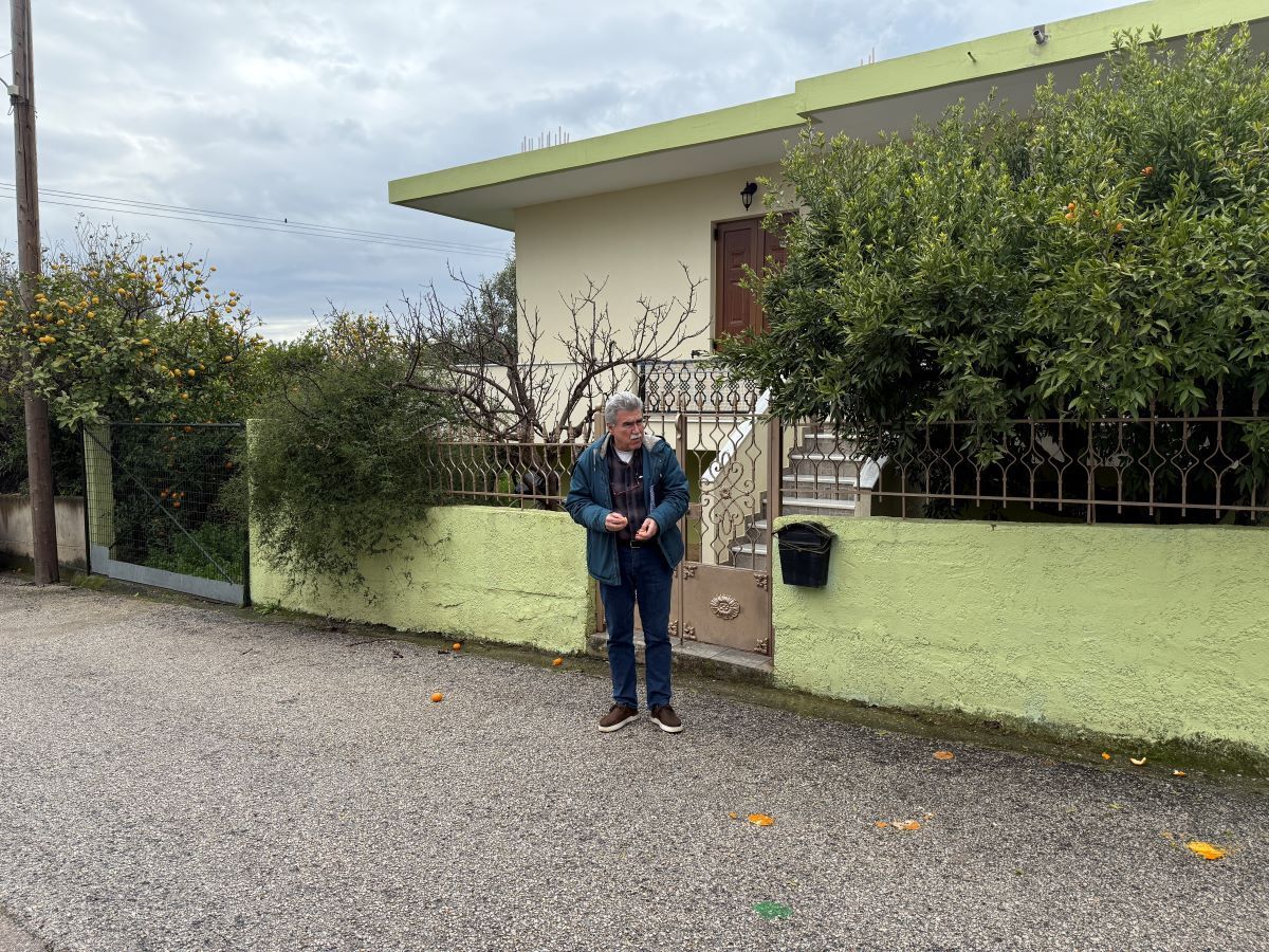 Τα εσπεριδοειδή είναι και εδώ κυρίαρχα, ακόμα και μέσα σε αυλές, απέναντι από ένα μεγάλο τοιχίο, που συγκρατεί άλλο χωράφι με ελιές.