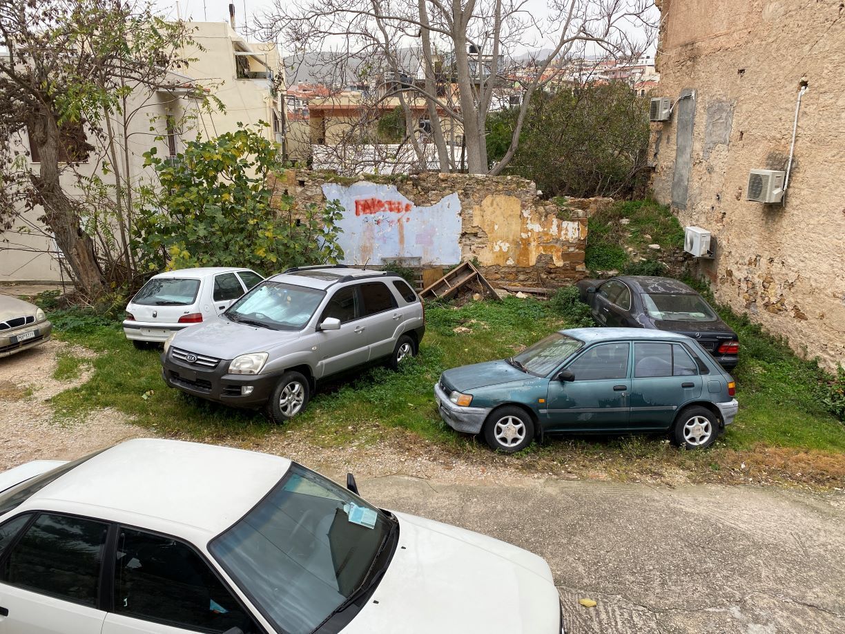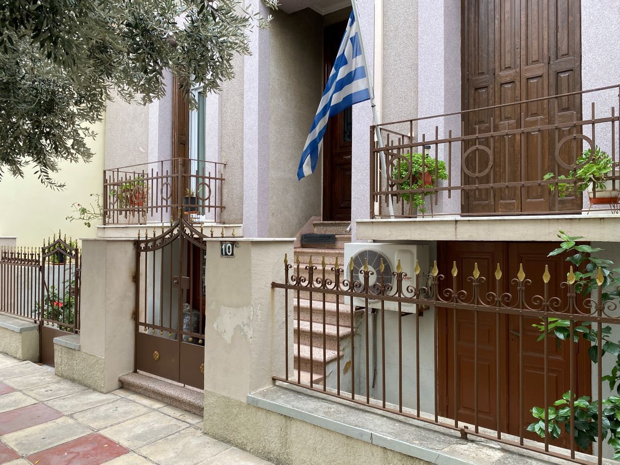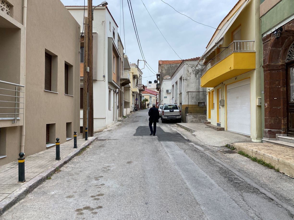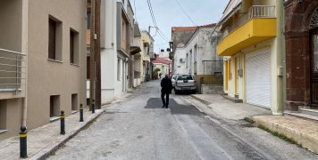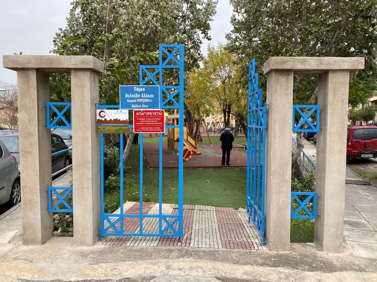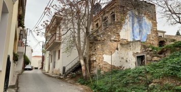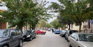 Απέναντι ακριβώς από το Πάρκο, περισσότερο χώρος με Παιδικές χαρές, βρίσκονται δύο χαρακτηριστικά «δίδυμα» πέτρινα σπίτια, το ένα με στοιχεία ΙΔΨ στην είσοδο και ημερομηνία 1951, συνεχίζεται με σπίτια που… σκιάζονται από γιασεμιά και βουκαμβίλιες, για να αρχίζει να ανηφορίζει με μια Πολυκατοικία από την μία πλευρά και την Εκκλησία της Αγίας Ματρώνας από την άλλη.