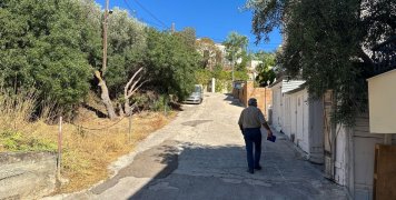 Ένα σπίτι με ένα γιασεμί στην είσοδο αριστερά και απέναντι ένας λόφος έτοιμος να… ξεκολλήσει, με δίπλα του ένα μουντό τοιχίο, που τουλάχιστον θα άξιζε ο Δήμος να του δώσει ένα χρώμα.