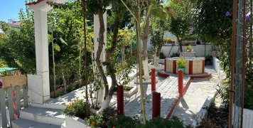 Συνεχίζομε με το Τεχνικό γραφείο της Δέσποινας Ψυχή με μια λεμονιά στην είσοδο, μια σκιερή Αροκάρια και απέναντι ένα γκαράζ, με ταβάνι έναν άμπελο γεμάτο σταφύλια.