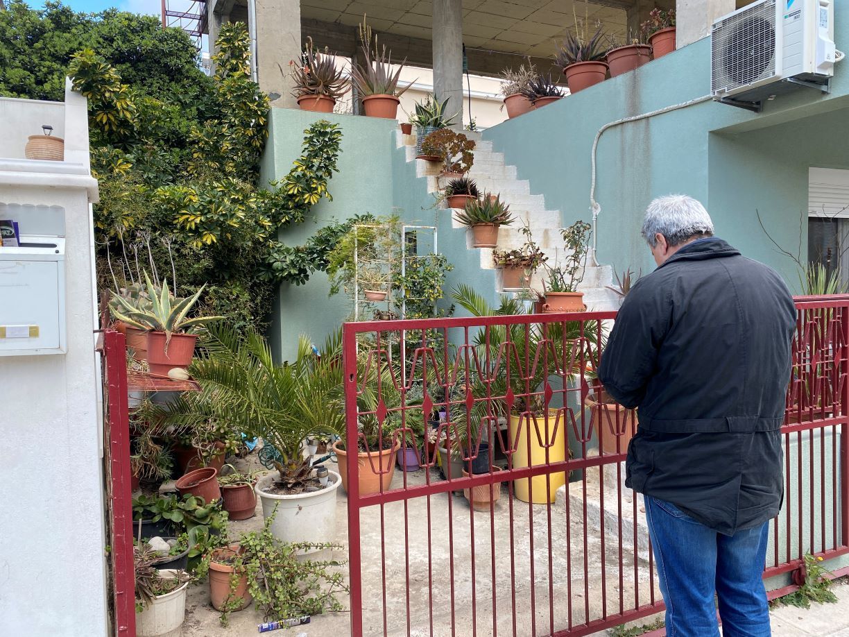 Βγαίνοντας ξανά στην Αλλατίου συναντάμε δεξιά ένα μπλέ σπίτι με κακτοειδή… εν παρατάξει, που καμαρώνει πάντως η γειτόνισσα Παρασκευή Κοκολιά από απέναντι, που μένει στην δική της γωνία εδώ και 45 χρόνια και φυσικά γκρινιάζει για τον μόνιμο βραχνά της περιοχής και της οδού, που είναι ο χώρος στάθμευσης, που διαθέτει στο τέλος της.