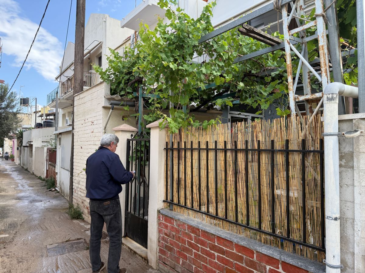 Ένα σπίτι με πέτρινη επένδυση δεξιά, με ένα ωραίο κάγκελο στην περίφραξη, μια παλιά οικία αριστερά με δύο οικοπεδικούς χώρους σχεδόν χωράφια, ένα προσφυγικό σπίτι με μια ελιά και μια παλιά άσπρη Βέσπα στην αυλή.