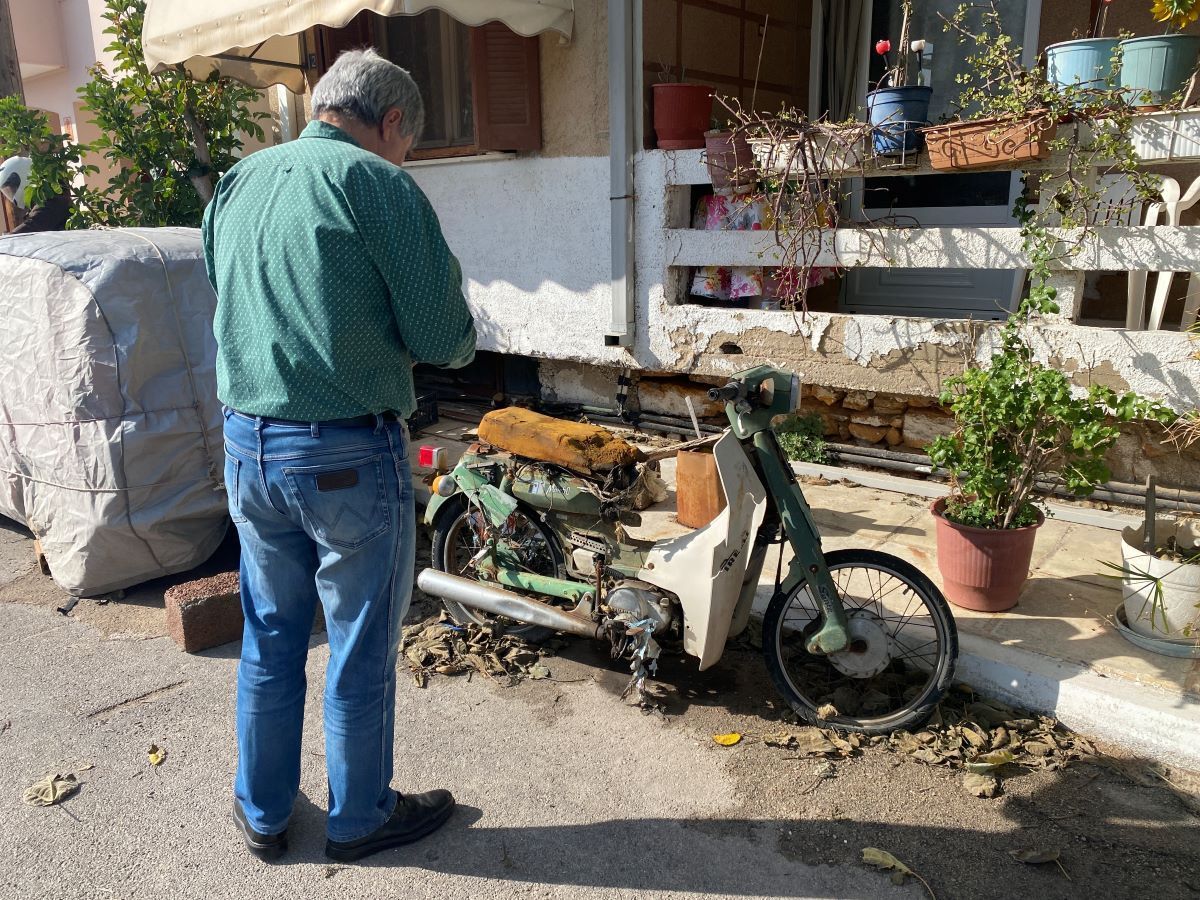 Ένα παλιό μοτοποδήλατο αντίκα στο πεζοδρόμιο θυμίζει στην κα Ευτυχία Ζανάρα τον αδελφό της, όπως της θυμίζουν και όλα το… Νοσοκομείο, που όσο θυμάται τον κόσμο γειτνιάζει με τα σπίτια τους.