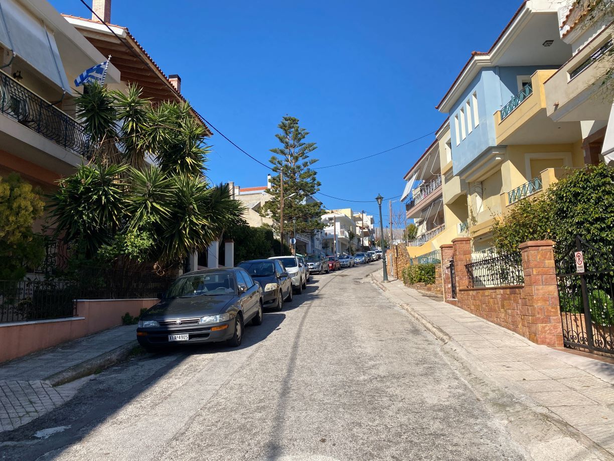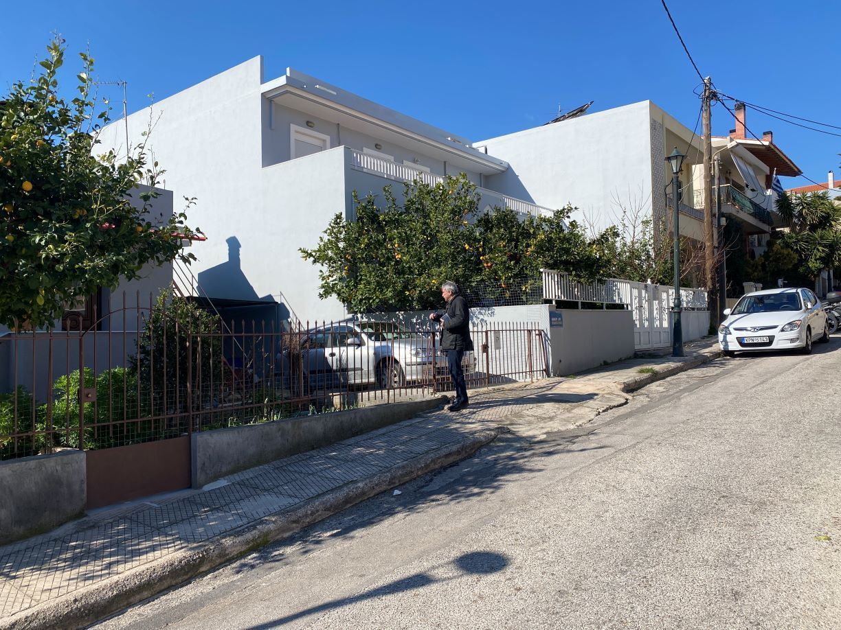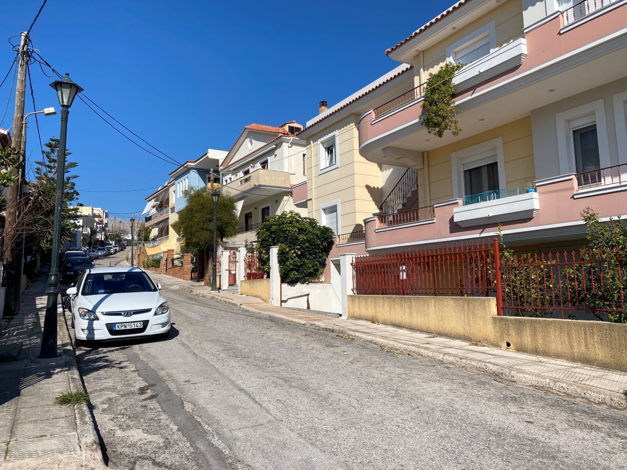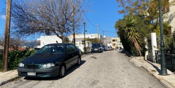 Θα την ακολουθήσουμε και εμείς ακριβώς σαν κάθοδο, παρατηρώντας ότι ξεκινάει από ένα μικρό παρτέρι, που στην ουσία περιβάλλει τους στύλους υψηλής τάσης της ΔΕΗ, απέναντι από ένα φράκτη με θάμνους, που… κρύβει το γωνιακό σπίτι, ενώ δεξιά και απέναντι υπάρχει ένα από τα δύο οικόπεδα της οδού, που έχουν γλυτώσει την πυκνή δόμηση, δείχνοντας πως ήταν η περιοχή προτού οικοδομηθεί.