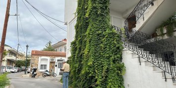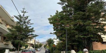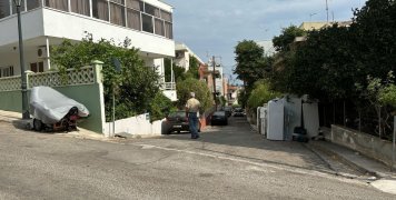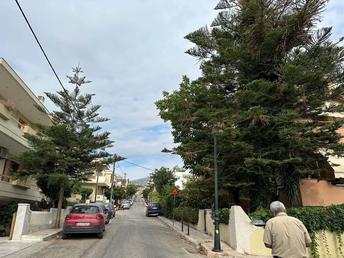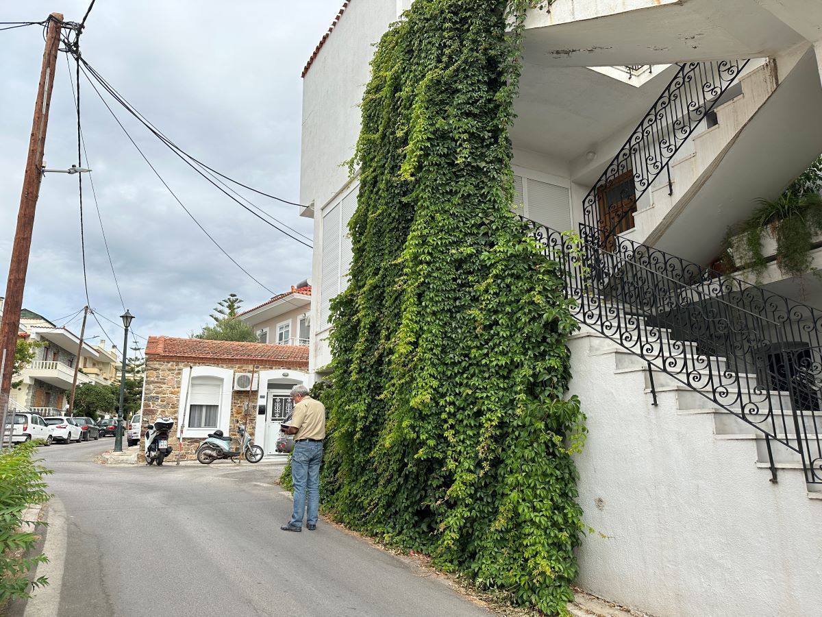 Μια πολυκατοικία στην γωνία είναι η μοναδική μη πράσινη παραφωνία, αφού όλα τα υπόλοιπα σπίτια έχουν στην πλειοψηφία τους δύο ή τρείς ορόφους με πρασινάδες και γιασεμιά στις εισόδους.