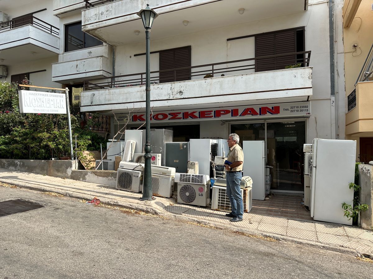 Απέναντι μια είσοδος με δύο έλατα, πεζοδρόμια σκεπασμένα με γιασεμιά, ένα μποστάνι απέναντι με… πιπεριές και εδώ συναντάμε την Αποθήκη Ηλεκτρικών ειδών Κιοσκεριάν.