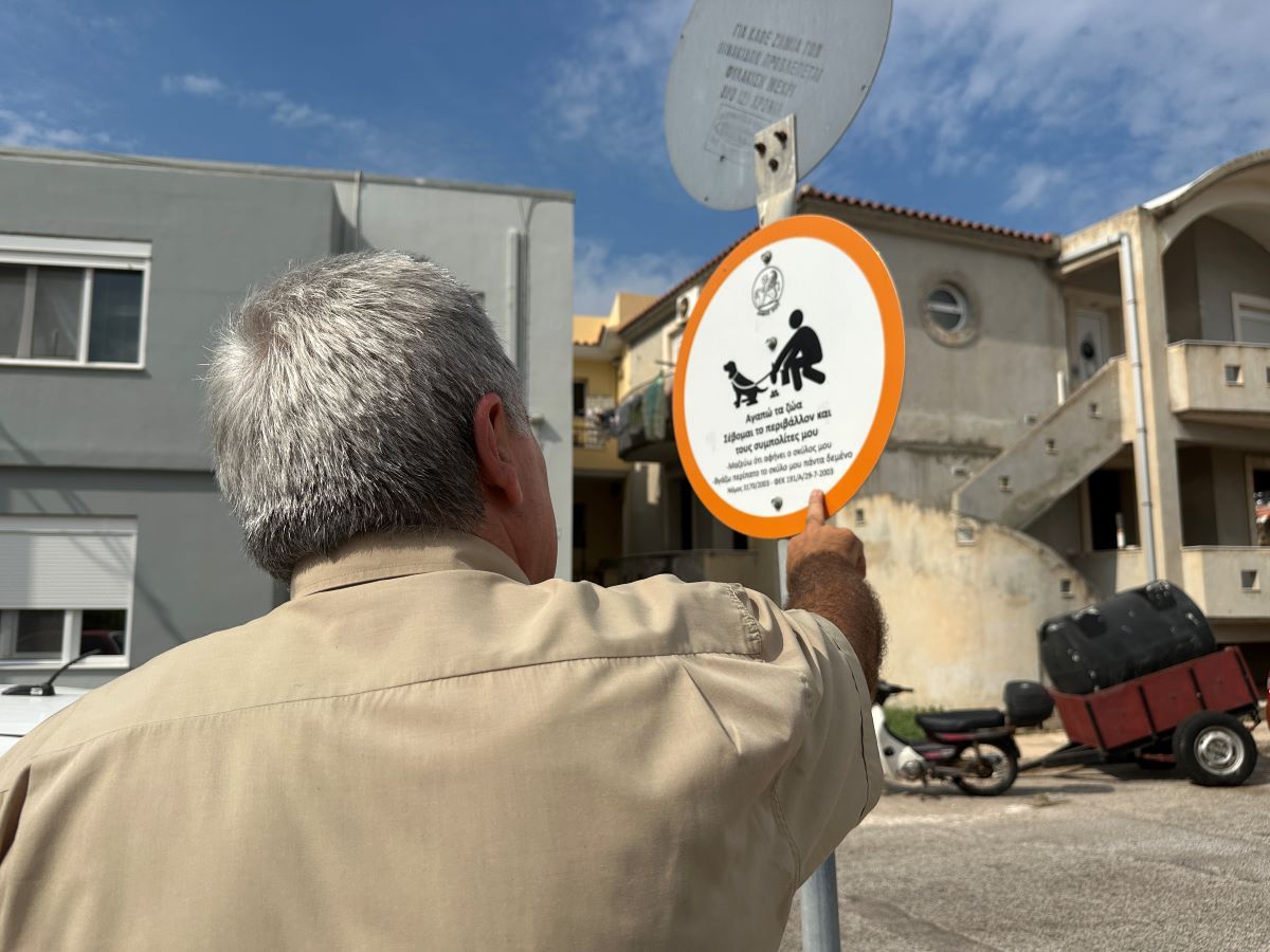 Και εδώ γκαράζ ακόμα και πλακάκια στην είσοδο και η οδός εδώ ολοκληρώνει την άνοδο της με ένα «πάρκο» στύλων στην άκρη της, απέναντι από ένα οικόπεδο και αντικρυστά με μια πινακίδα, που θυμίζει ότι μαζεύουμε τα… κακάκια των κατοικίδιων μας.