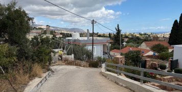 Ανατολικά ένα οικόπεδο, δεξιά μας μια πάροδος, που οδηγεί στην Εκκλησία της Ευρετής, απέναντι από ένα μουντό τσιμέντινο τοιχίο.