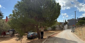 Δεξιά μας ένα αμπέλι, αριστερά μας πεύκα, με ένα μεγαλύτερο στην δεξιά στροφή.