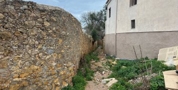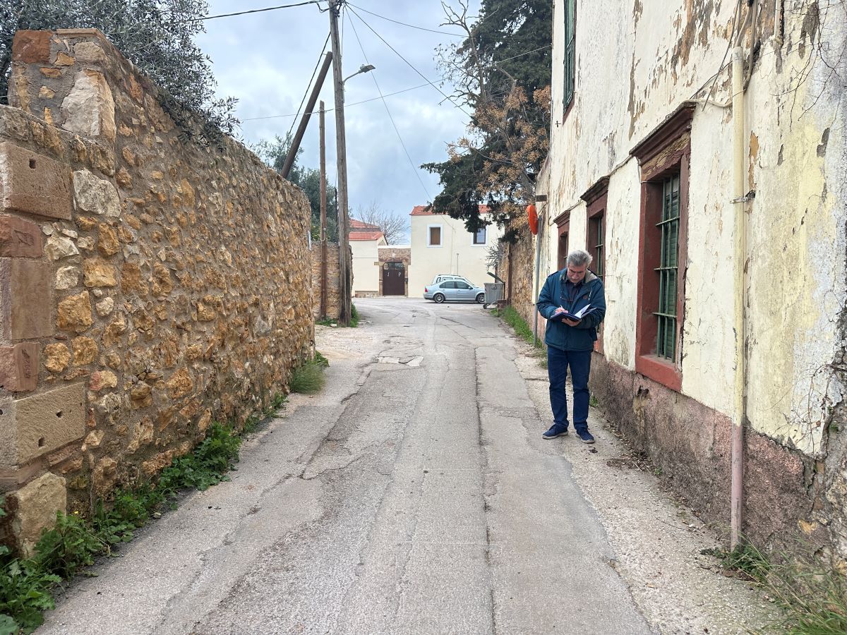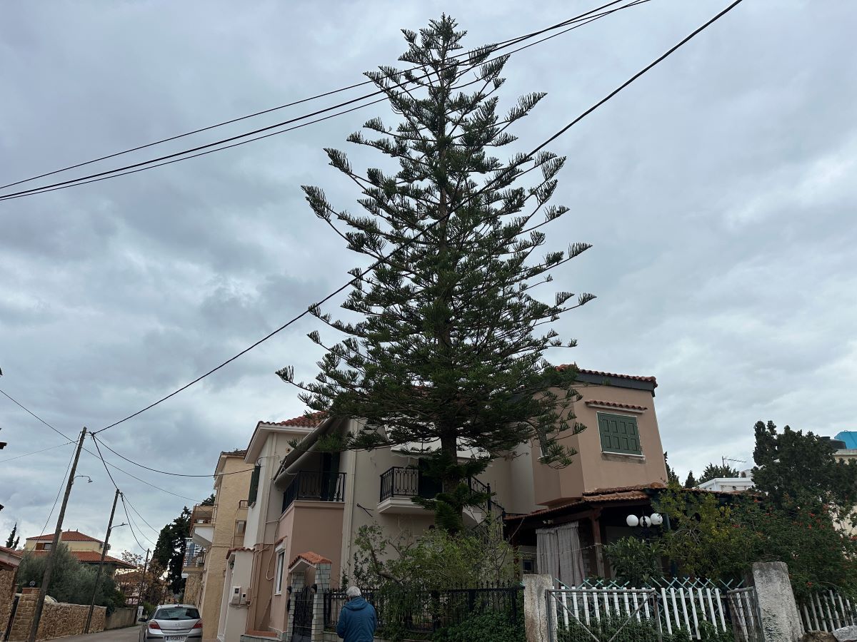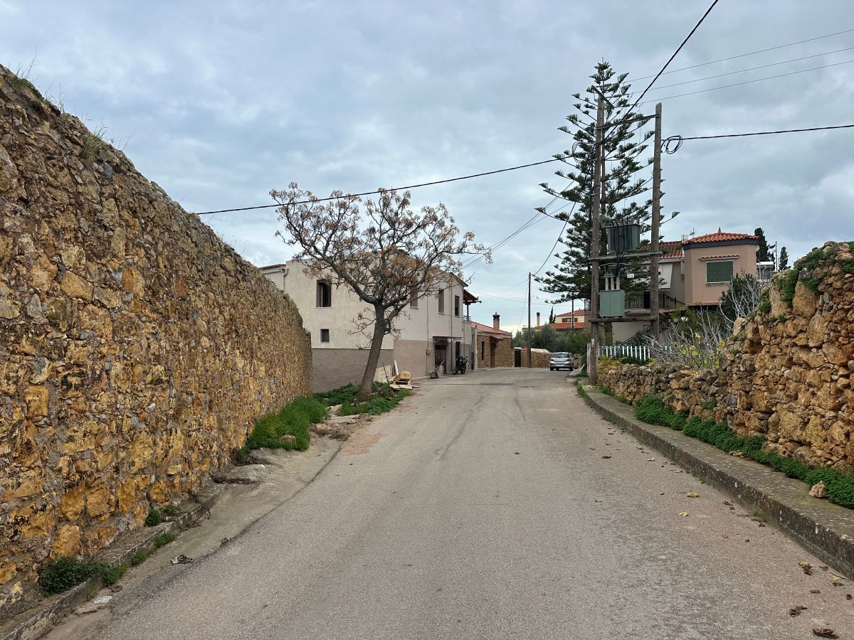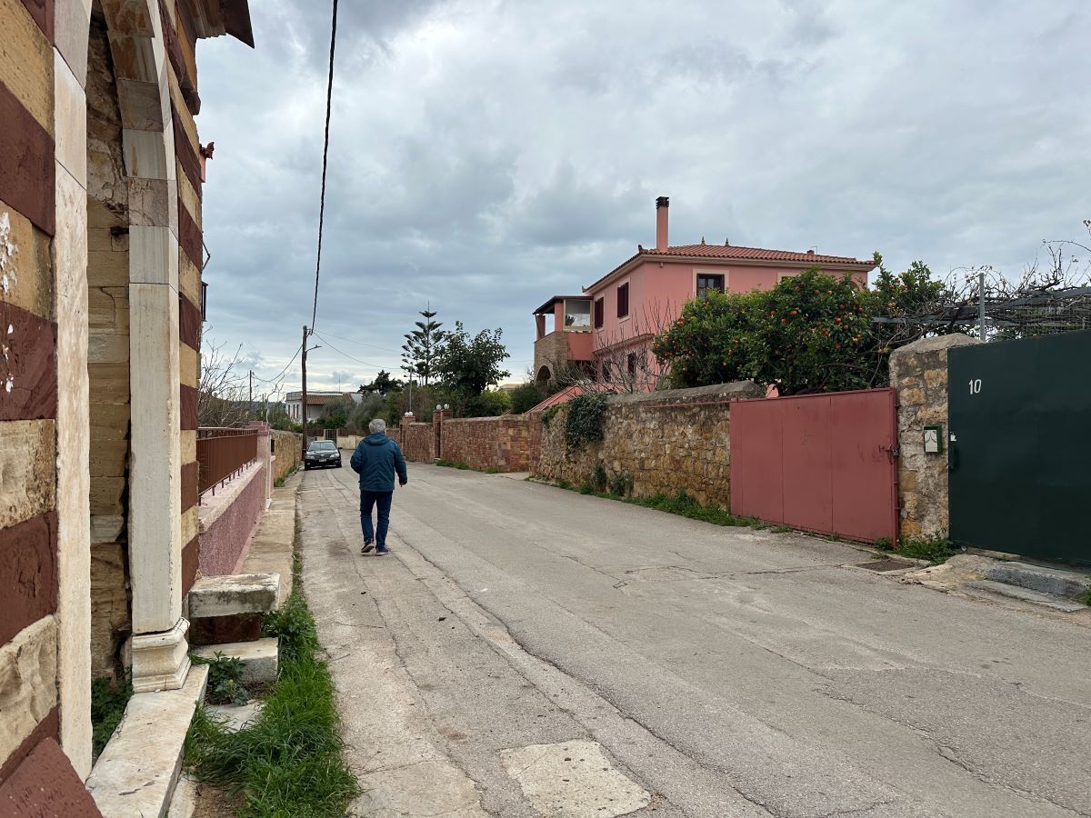 Αν και περιττεύει η γέφυρα αφού τα μπάζα την έχουν φέρει στο ύψος του οδοστρώματος, την παρακάμπτουμε βλέποντας ένα τοιχίο αριστερά, την συνέχεια του ρέματος, που κλασσικά έχει γίνει δρόμος, μια Αροκάρια δεξιά μας και οικίες εκατέρωθεν.