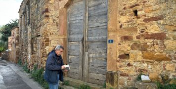 Μια άλλη μεγαλύτερης ηλικίας με ένα γκαράζ στην είσοδο και απέναντι μια επίσης παλιά οικία με μάγγανο.