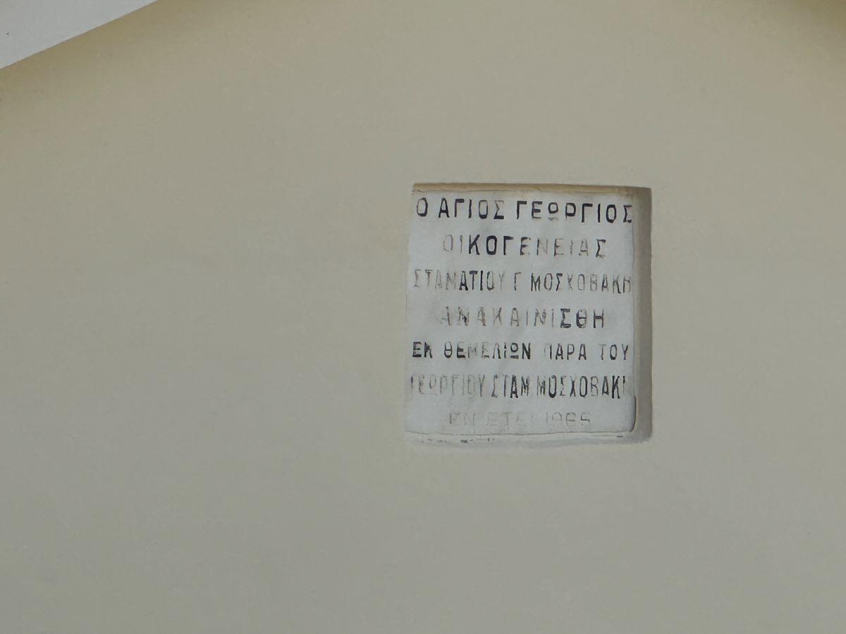 Ωραίες πράσινες διακοσμητικές πινελιές, χωράφια με πηγάδια και καλλιέργειες, παράλληλο αστικό και αγροτικό τοπίο και εδώ η οδός αλλάζει πλέον… χαρακτήρα, δίνοντας βάρος στο αγροτικό της στοιχείο, με μια έκπληξη μιας ιδιωτικής Εκκλησίας στην αυλή ενός σπιτιού, που η πινακίδα στην είσοδο της πληροφορεί ότι είναι ο Άγιος Γεώργιος, που ανήκει στην Οικογένεια Μοσχοβάκη, που τον ανακαίνισε το 1965.