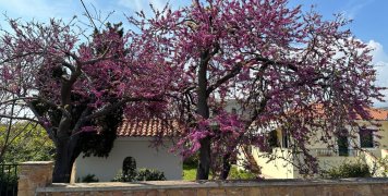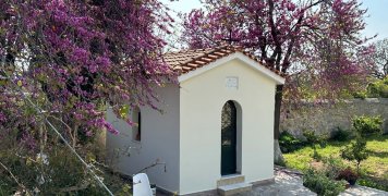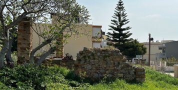 Ωραίοι κήποι, μουσμουλιές στην άκρη του δρόμου με… προκλητικούς καρπούς, ένας πρώην μάγγανος, μια στεγνή σήμερα στέρνα, στοιχεία εμφανώς που παραπέμπουν σε παλιά περιβόλια, ένας πεύκος και μια στροφή του δρόμου, που από και κάτω γίνεται… χωμάτινος οδηγούν σε αυτό ακριβώς.