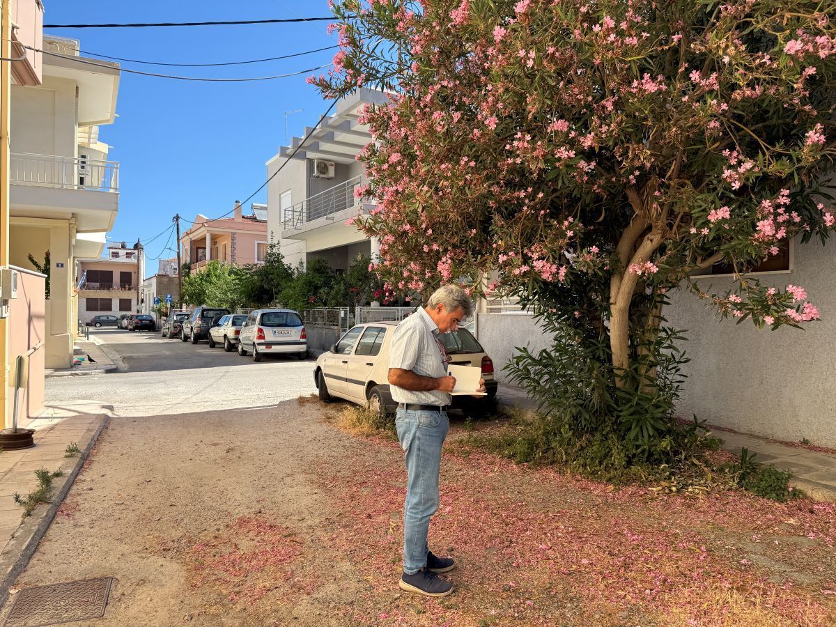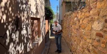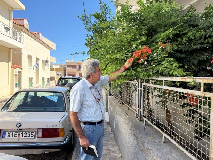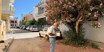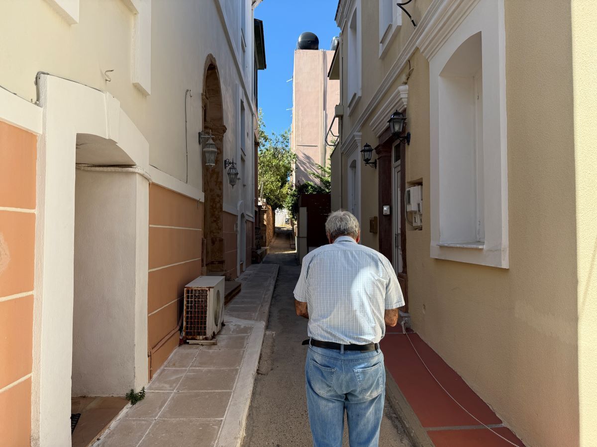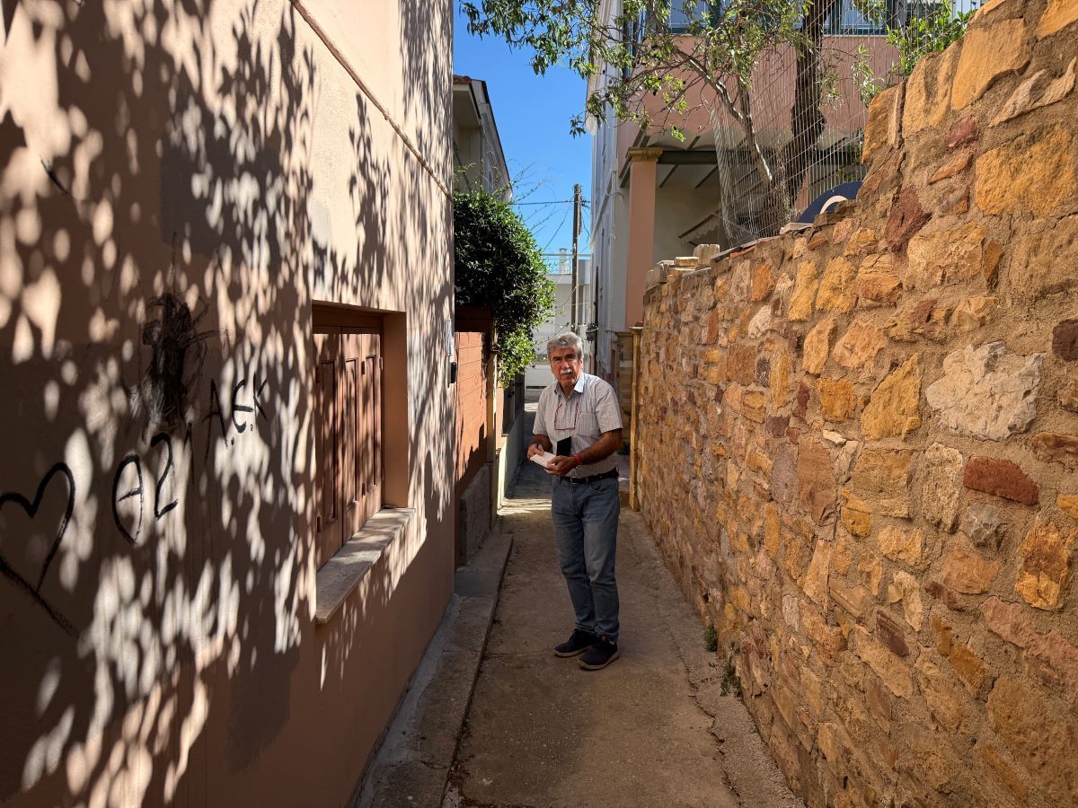 Βγαίνοντας από το αριστερό μας χέρι, αυλές με γιασεμιά και λεμονιές, δεξιά μας μια Ελληνική σημαία στην είσοδο άλλης οικίας με ψηλά σκαλοπάτια στην είσοδο και ένα κόκκινο λουλούδι έξω από την πόρτα του.