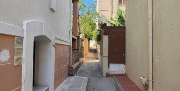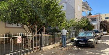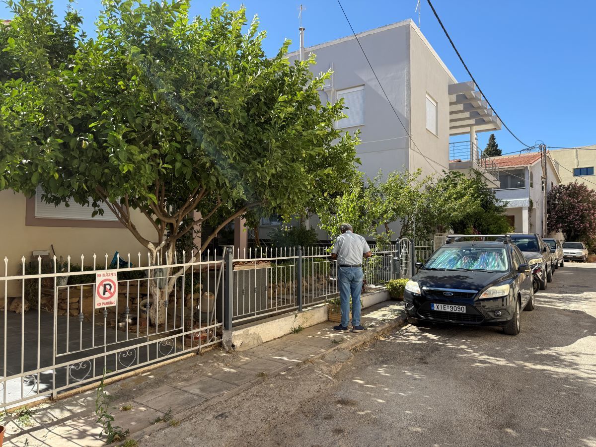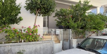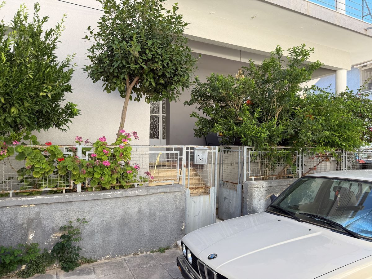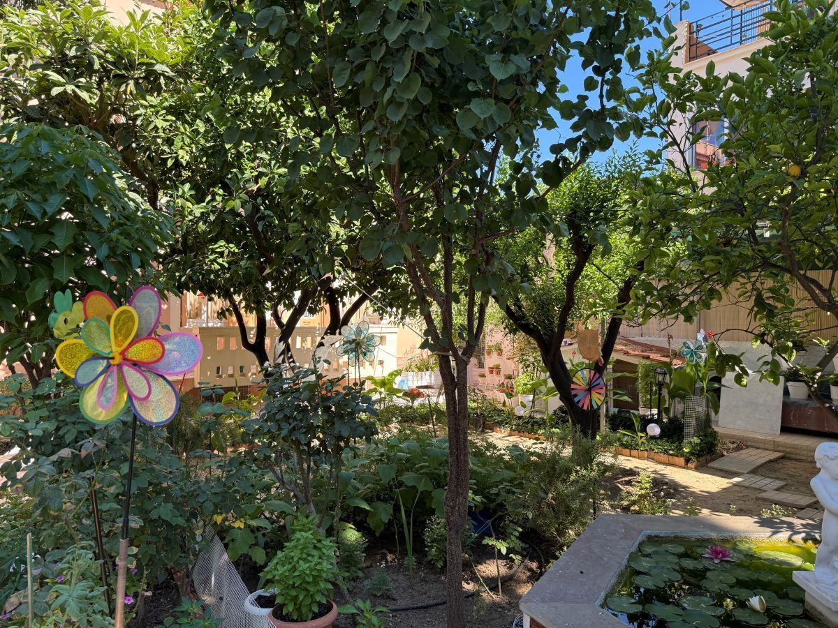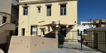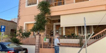 Απέναντι από το τριώροφο αυτό δια διπλοκατοικία κάτω με μια υπέροχη αυλή με γιασεμιά και πάνω με μια τοιχογραφία της «Χίας κόρης» στην είσοδο του 2ου ορόφου.