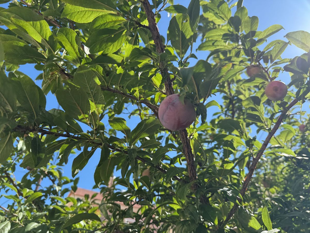 Γλάστρες πολλές στο απέναντι πεζοδρόμιο, ένα φρουτόδενδρο με ρεγκλότες, που ακόμα είναι άγουρες, δεξιά μας οικίες στον αριθμό 4 και 8, απέναντι από μονοκατοικίες με γιασεμιά στην είσοδο και κόκκινα χωνάκια.