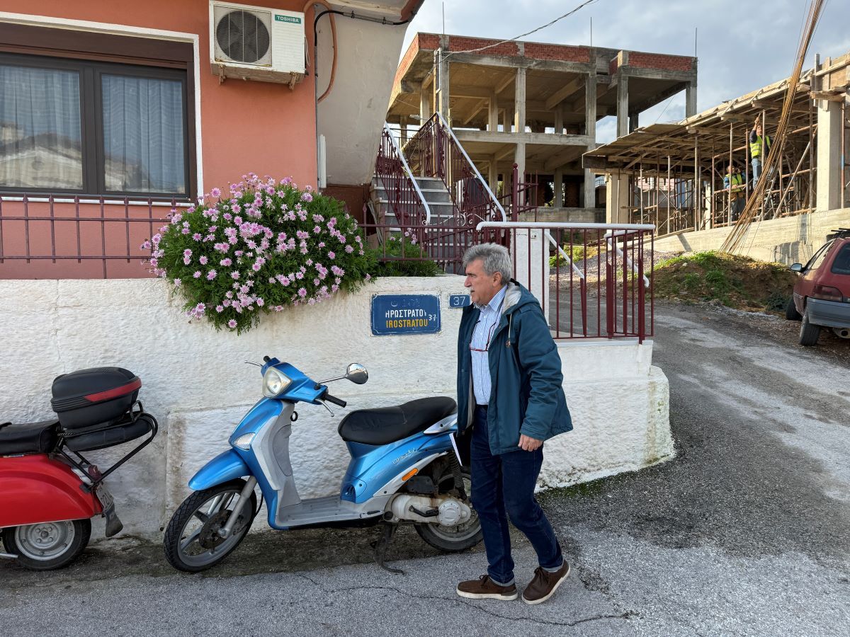 Ο δρόμος πάντα κατηφορίζει ενώ στο βάθος φαίνεται η θάλασσα μέχρι και το ύψος του Πάσπαργου.
