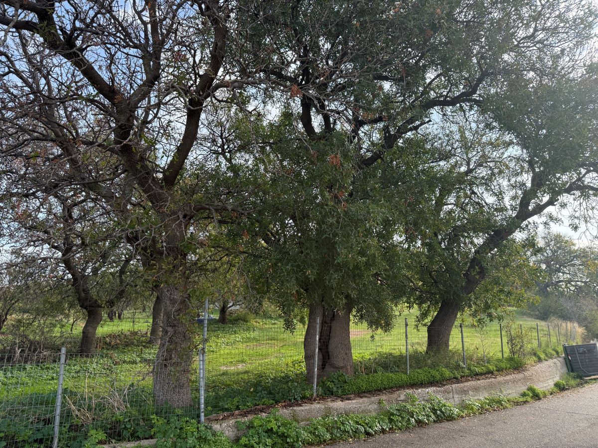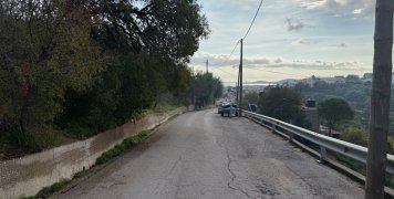 Μια συστάδα τσικουδιές από την μία πλευρά και χωράφια από την άλλη σε χαμηλότερο επίπεδο, που σε όλο το μήκος διαθέτει προστατευτική μπάρα.