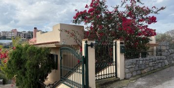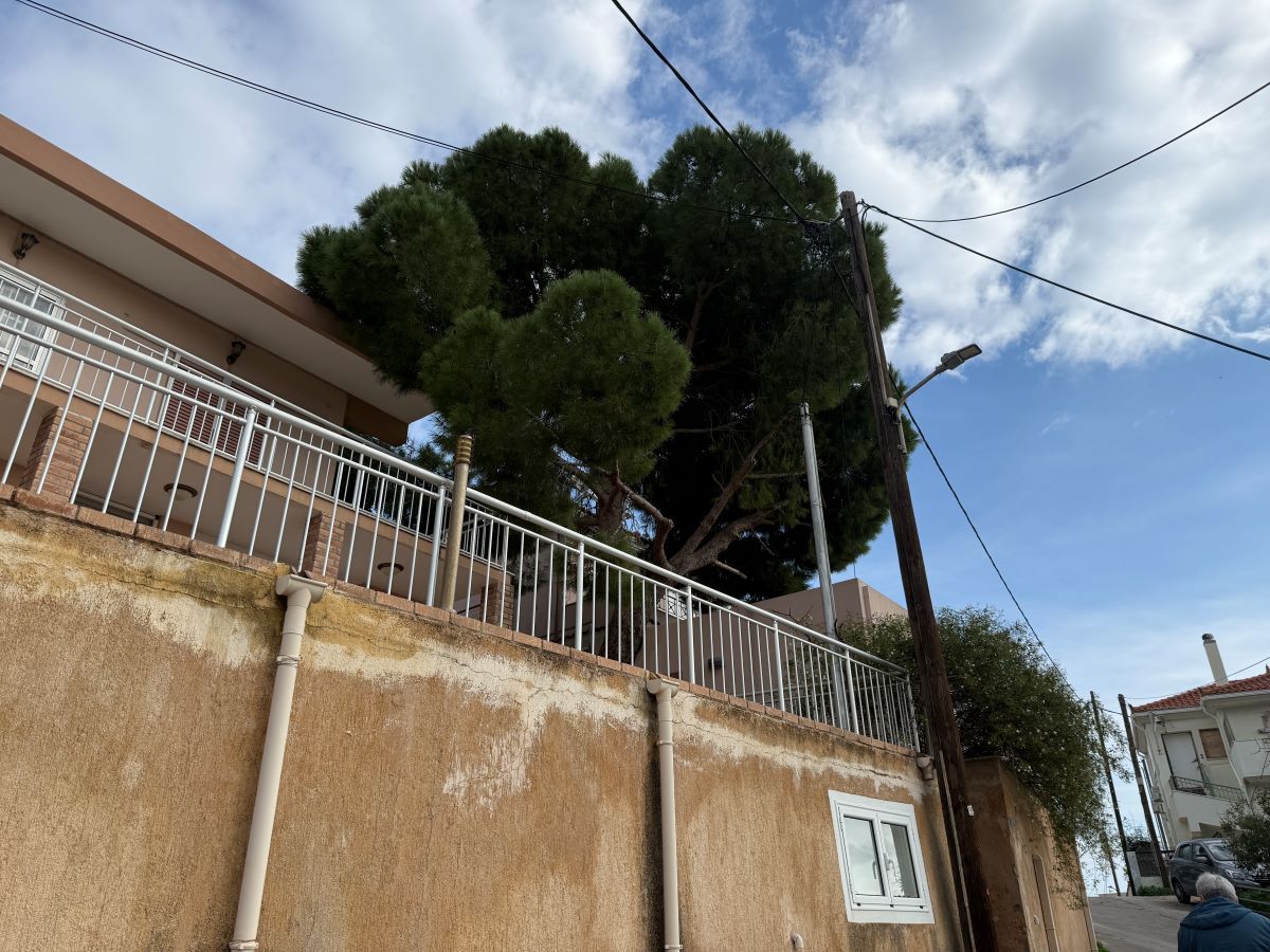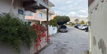Μια αρτάνα με μαργαρίτες και μια σημαία είναι η πρώτη υποδοχή, με ένα ελεύθερο οικόπεδο από την εσωτερική πλευρά, γιατί από την εξωτερική υπάρχει μια υπέροχη θέα προς τις Οινούσσες και τον Μικρασιατικό Μίμαντα.