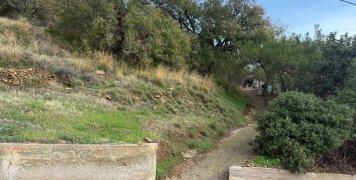 Κατεβαίνοντας παρατηρούμε τον μεγάλο πεύκο αριστερά μας μέσα σε μια αυλή για να ανηφορίσουμε για την συνέχεια μπροστά σε ένα γκαράζ με πλούσια πρασινάδα στην μια πλευρά του, οικίες και από τις δύο πλευρές και ένα παροπλισμένο τρίκυκλο.
