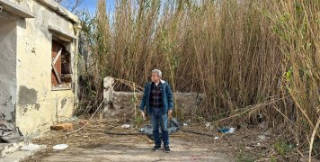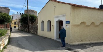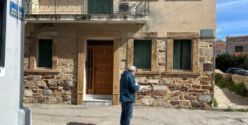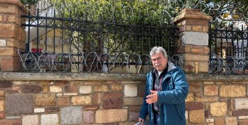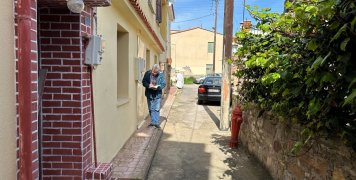 Από το στενό οδηγούμαστε σε μια αυλή όπου ο συνταξιούχος Πυροσβέστης Χρ. Κουγιουμτζιάδης ταϊζει τα γατιά της γειτονιάς από άποψη, την οποία εκφράζει.
